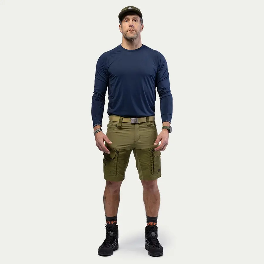 Pánské outdoorové kraťasy BN010 jsou navrženy pro náročné dobrodruhy, kteří ocení kombinaci odolnosti, funkčnosti a pohodlí. Vyrobené z recyklovaného materiálu TERRAFLEX™ s jemně broušeným povrchem, zajišťují tichý pohyb a výjimečný komfort. S celkem sedmi praktickými kapsami, zipovou ventilací na stehnech a robustním úchytem na nářadí tyto kraťasy podporují veškeré vaše potřeby bez omezení pohyblivosti. Zesílené trojité švy v oblasti rozkroku zvyšují odolnost v nejnáročnějším terénu, zatímco vodoodpudivá úprava Teflon EcoElite® poskytuje spolehlivou ochranu proti nepředvídatelnému počasí. Lehké, ale mimořádně pevné, tyto kraťasy také disponují odolným čtyřsměrným strečem v pase pro maximální flexibilitu, dvojitě zesílenými poutky na opasek pro nošení těžkého nářadí a víceúčelovým systémem poutek pro zajištění nezbytností, jako jsou sekery nebo karabiny. Ať už se vydáváte hluboko do divočiny nebo tvrdě pracujete venku, pánské outdoorové kraťasy BN010 jsou připraveny obstát.