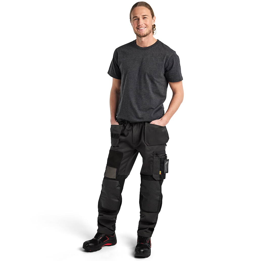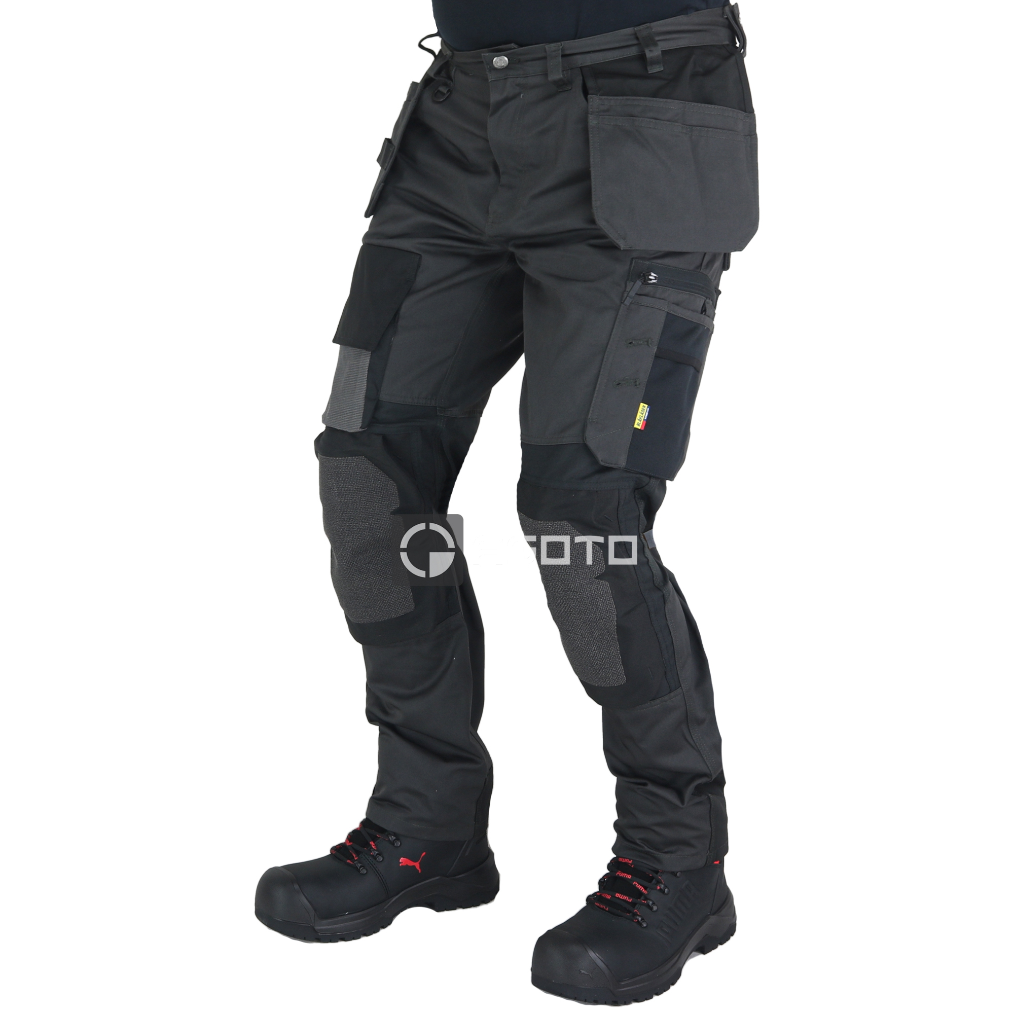 Doživotní záruka na švy! Tyto elegantní, přizpůsobivé a extrémně odolné řemeslnické kalhoty byly navrženy s důrazem na každý detail, aby splňovaly nejvyšší požadavky profesionálů na volnost pohybu, funkčnost a pohodlí. Kombinace pevného materiálu a strečových dílů zajišťuje výjimečnou flexibilitu, což ocení zejména podlaháři, obkladači a další řemeslníci, kteří často pracují v kleče. Strategicky umístěné strečové panely na zadním sedle, předních kapsách a zadní straně kolen maximalizují rozsah pohybu a zvyšují komfort i při celodenním nošení. Kalhoty jsou vybaveny praktickými kapsami, včetně speciální kapsy na nůž z materiálu Kevlar® s klopou a strečovým dílem, stejně jako flexibilní kapsou na telefon, která pojme většinu moderních smartphonů. Díky použití odolné směsi 65 % polyesteru a 35 % bavlny v keprové vazbě o gramáži 300 g/m2 nabízejí tyto kalhoty nejen dlouhou životnost, ale i vysokou odolnost vůči náročným pracovním podmínkám. Jako důkaz precizního zpracování a špičkové kvality poskytuje výrobce doživotní záruku na švy, což potvrzuje, že tyto kalhoty obstojí i v těch nejnáročnějších podmínkách.