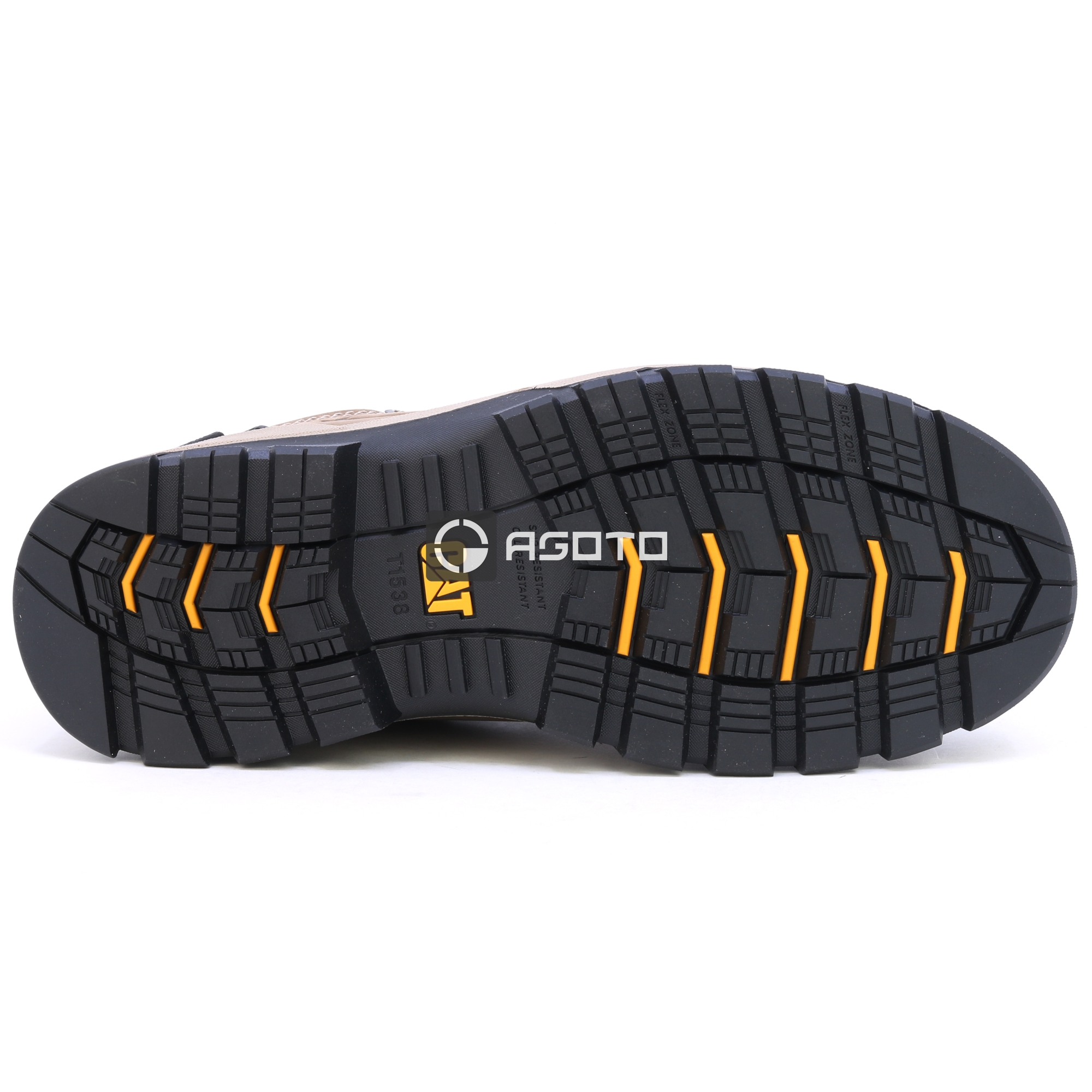 • detail Caterpillar pánská kožená pracovní obuv Striver XL Low S3 FO HRO béžová