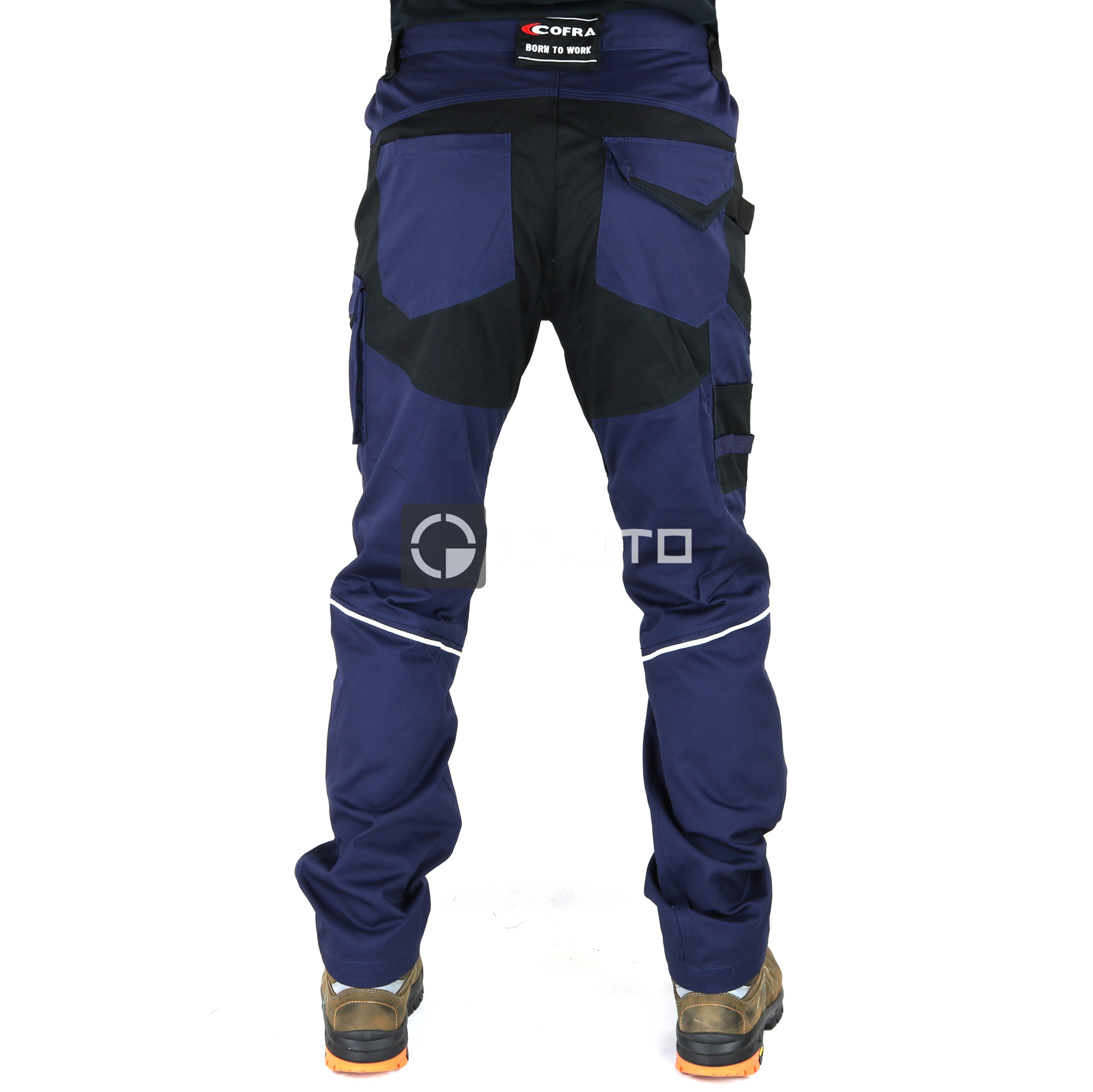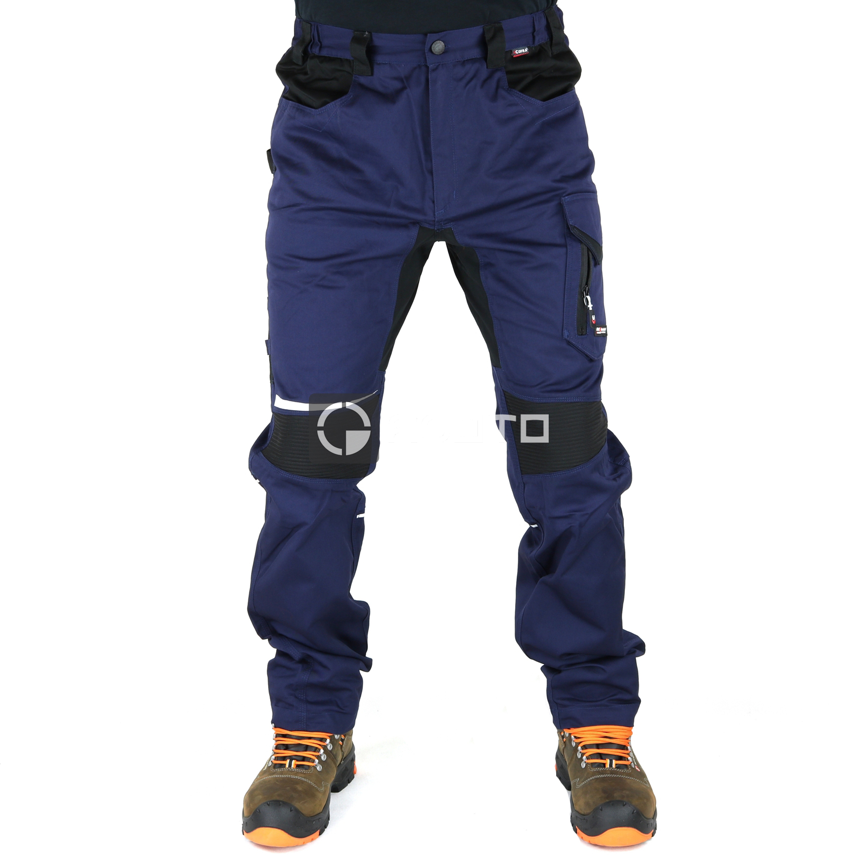 Stretch pracovní kalhoty Cofra Skiathos mají široké přední kapsy, dvojitou zadní kapsou s uzavřenou chlopní, látku s vysokou elasticitou, smyčku na kladivo, ergonomický design kolen a nohou, reflexní prvky, žebrované pružné kolení vložky umožňující flexibilitu pohybu, levá boční kapsa s dvojitým otvorem se zapínáním na zip, pravá boční kapsa se zapínáním na druk. Materiál: 60% bavlna, 37% polyester, 3% elastan, 245 g/m