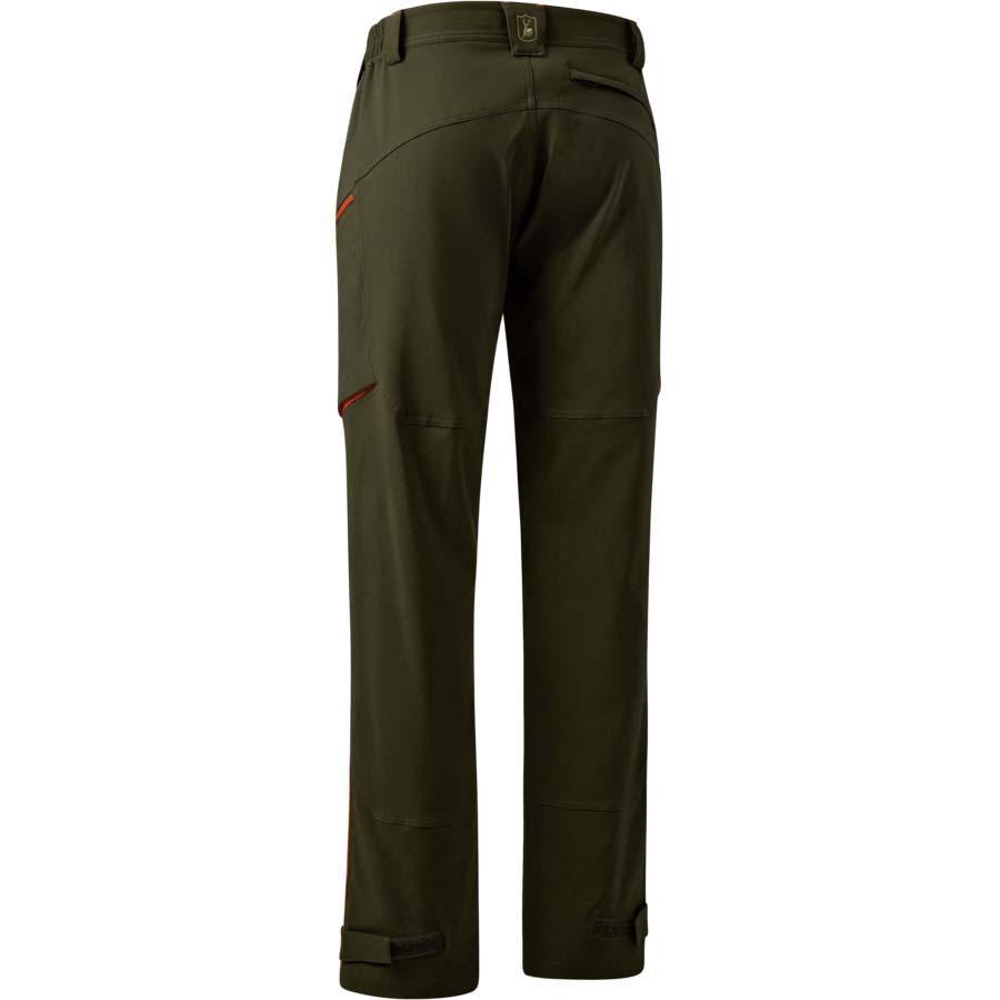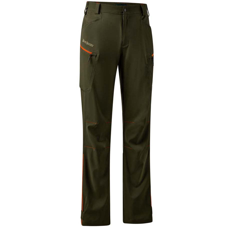 Kalhoty Chamois v zeleném provedení Forest Green s oranžovými detaily kombinují pohodlí a funkčnost pro náročné outdoorové aktivity. Díky pružné a prodyšné tkanině nabízejí maximální volnost pohybu a přizpůsobení se postavě. Elastický pas po stranách zajišťuje pohodlné nošení po celý den. Praktické úložné prostory zahrnují dvě přední kapsy, dvě stehenní kapsy na zip a zadní kapsu se skrytým zapínáním. Předtvarovaná kolena zvyšují komfort při pohybu, zatímco možnost nastavení šířky nohavic pomocí suchých zipů umožňuje přizpůsobení podle potřeby. Materiál s vodoodpudivou úpravou chrání před vlhkostí a nečistotami, zatímco lehká konstrukce zajistí pohodlí bez zbytečné hmotnosti. Kalhoty jsou ideální volbou pro myslivce, outdoorové nadšence i každodenní nošení v přírodě. Materiál: 90% Polyester / 10% Elastan