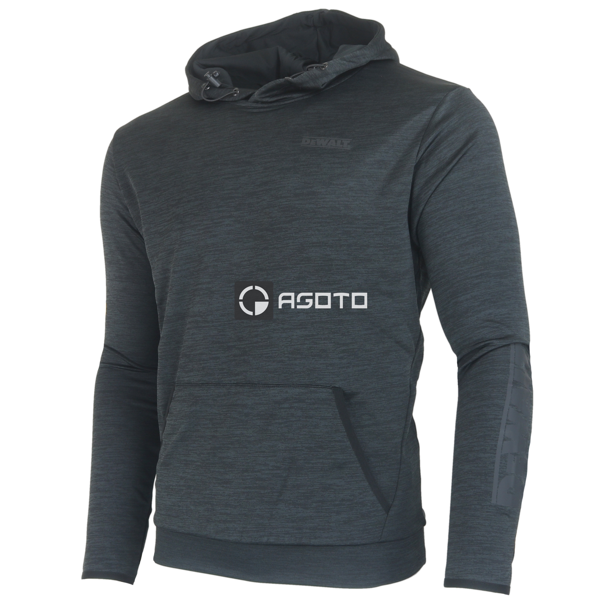 Pozor! Jedná se o licencovaný, originální výrobek společnosti DeWalt Workwear. Černá marl funkční mikina s kapucí, přední kapsou a kapucí s 3 panely. Lehká 100% polyesterová tkanina. Potisk na hrudi a rukávu s vázanou manžetou. Mikina se skvěle hodí pro práci v pohybu, neomezuje a dýchá.