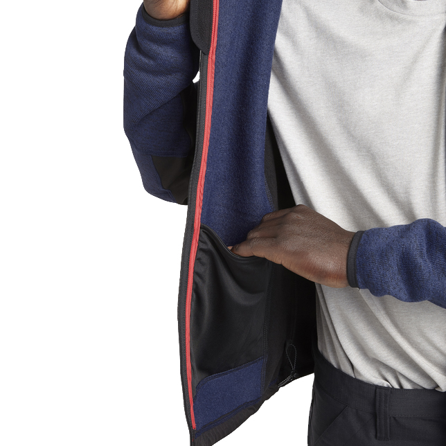 Mikina s žerzejovým vnějškem a česaným vnitřkem se stojacím límcem a ergonomickými rukávy. Vzadu delší pro lepší přizpůsobení. Dvě boční kapsy a jedna přední kapsa se zapínáním na zip a reflexními detaily. Nastavitelný lem na šňůrku. Materiál: Úplet 100% Polyester, 300 g/m2; Softshellové vložky 94% Polyester 6% Elastan 300 g/m2