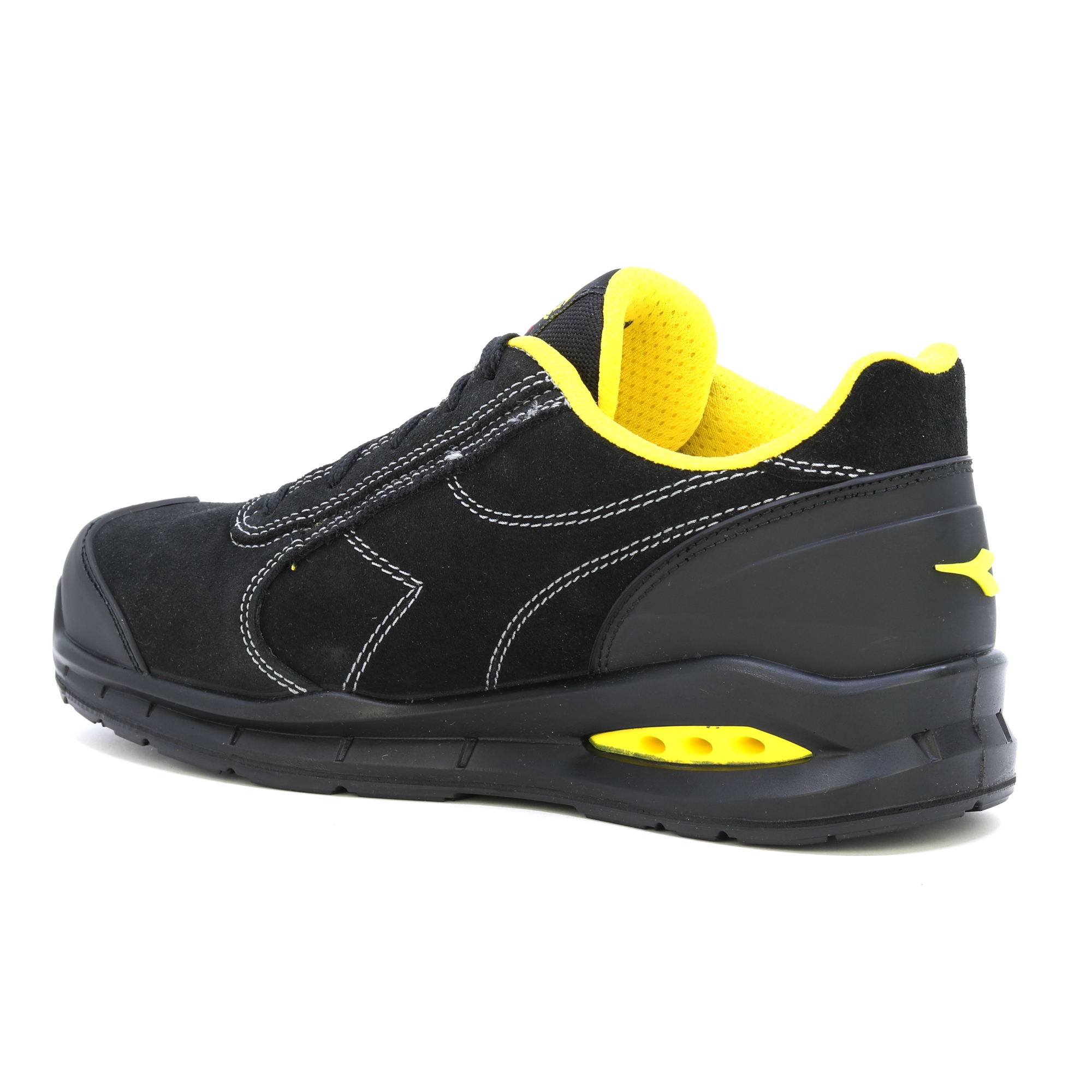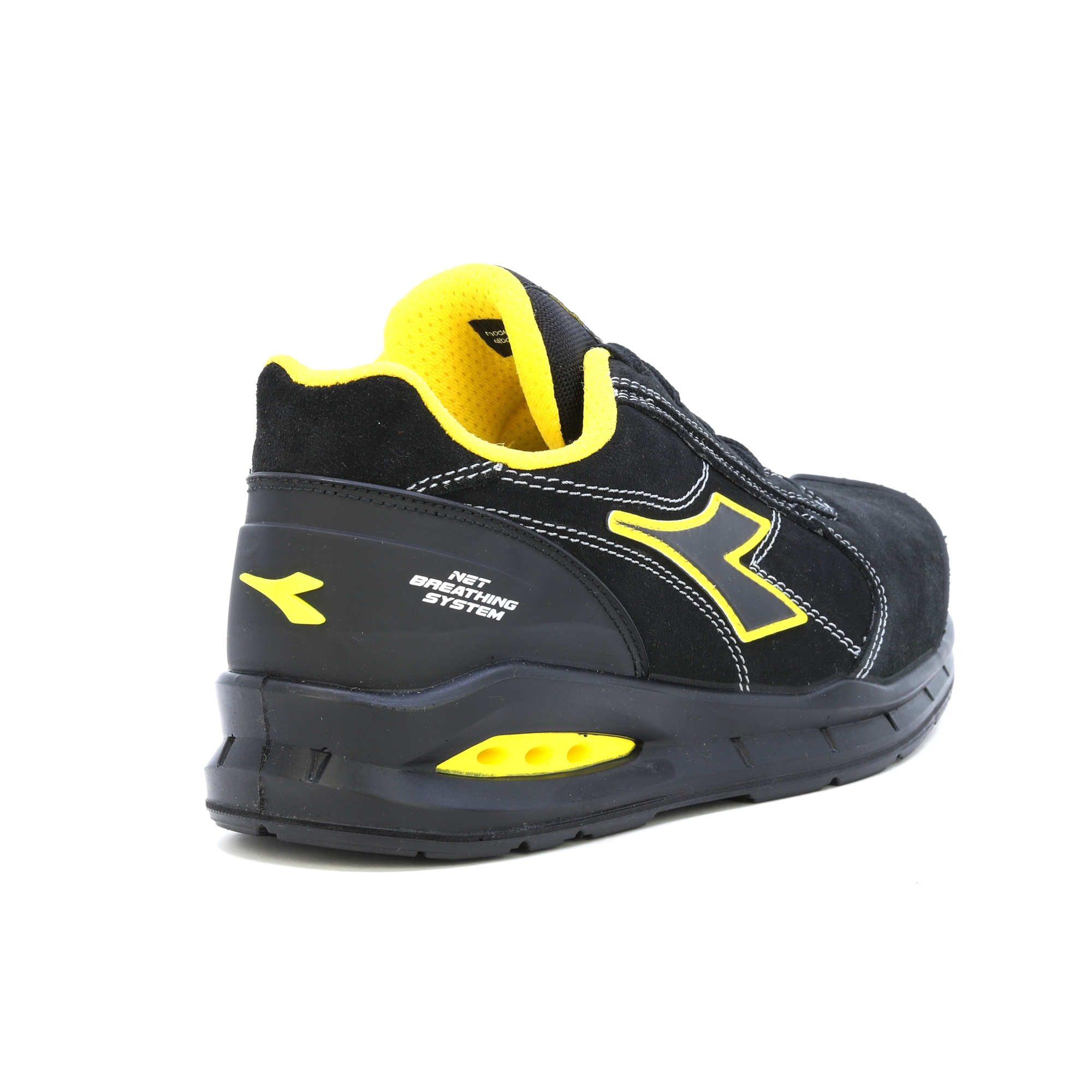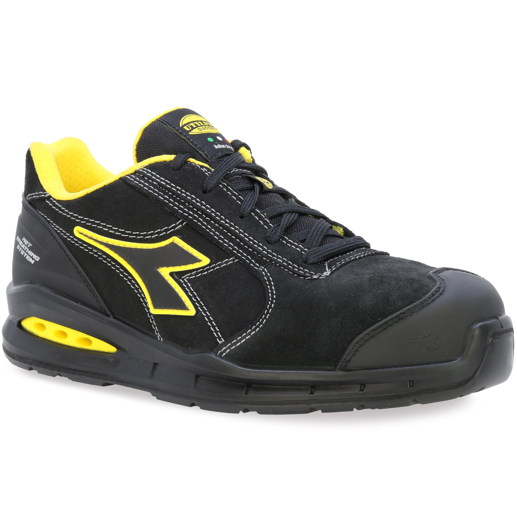 Bota, která dýchá! Nízká bezpečnostní obuv S3 z voděodpudivého italského štípaného semiše s Net Breathing System od Geox na bocích. Hliníková tužinka 200J. Šířka 11. K PODRÁŽKA, oděruvzdorná a ultraprodyšná nylonová podšívka a vyjímatelná prodyšná stélka s aktivním uhlím. ESD. DÝCHACÍ SYSTÉM OD GEOX - AIRBOX: Diadora Utility rozšiřuje svou řadu produktů NET DÝCHACÍ SYSTÉM (licencovaný společností GEOX) a zavádí vlastní patentovanou technologii. Tato exkluzivní řada, vyvinutá ve výzkumných laboratořích Diadora, představuje dokonalost v oblasti inovací a designu. Tyto boty nechávají nohu volně dýchat a nabízejí maximální pohodlí v každé situaci. Inovativní boční poloha ventilačních otvorů v nové konstrukci Airbox zajišťuje bezkonkurenční prodyšnost. Speciální membrána GEOX Diadora byla nyní dále vylepšena přidáním otvorů po stranách, které zajišťují maximální prodyšnost pro nohu a zároveň zůstávají v dokonalé harmonii s ochrannými prvky, které tvoří botu. Výzkum potvrdil, že tato membrána – která obsahuje drobné dírky nebo „mikropóry“, které jsou menší než kapka vody, ale větší než molekula vodní páry – zabraňuje pronikání vody do boty a zároveň zajišťuje, že noha zůstane suchá.
