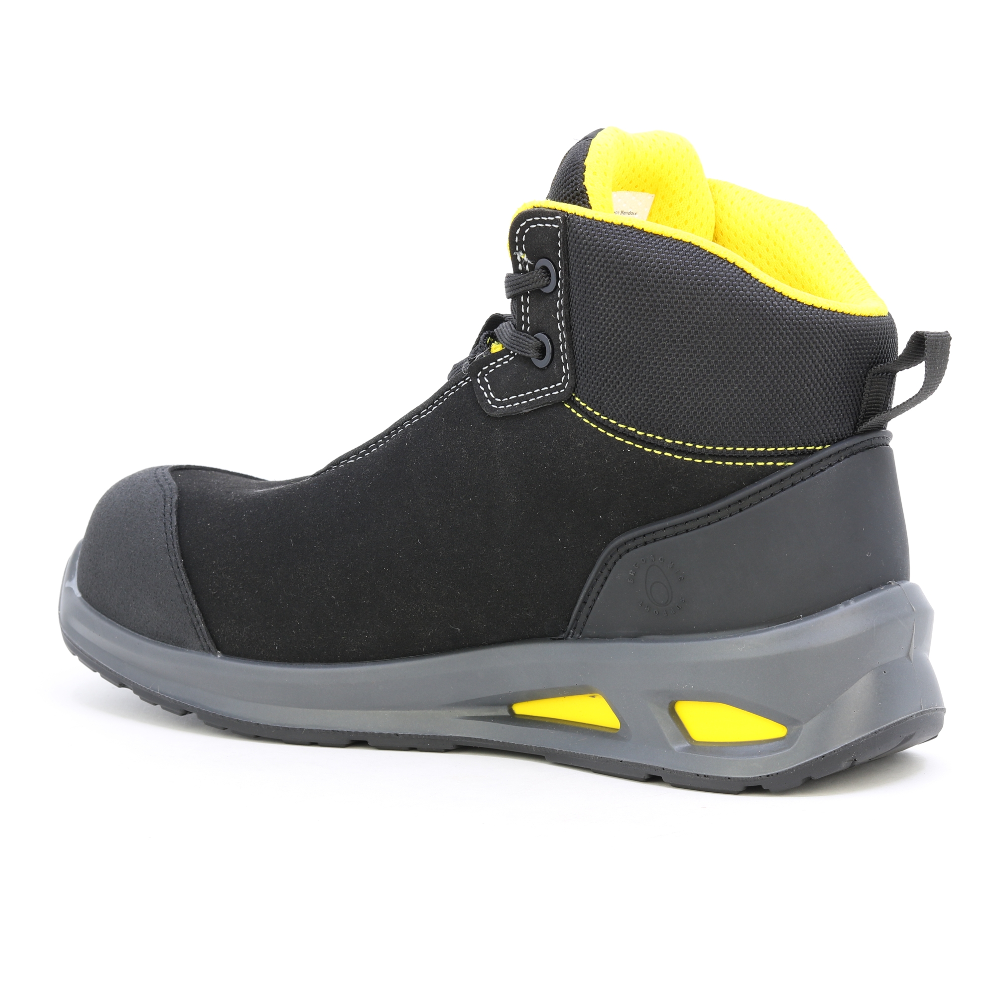Kotníková bezpečnostní obuv S3 ze 100% voděodpudivé kůže a technologií tlumení SOFTBOX. 200J vícevrstvá tužinka. Šířka 11. 100% polyesterová podšívka s protiskluzovou vložkou z mikrovlákna. Vyjímatelná stélka z PU pěny a polyesteru. TPU patní miska. ESD a bez kovů.