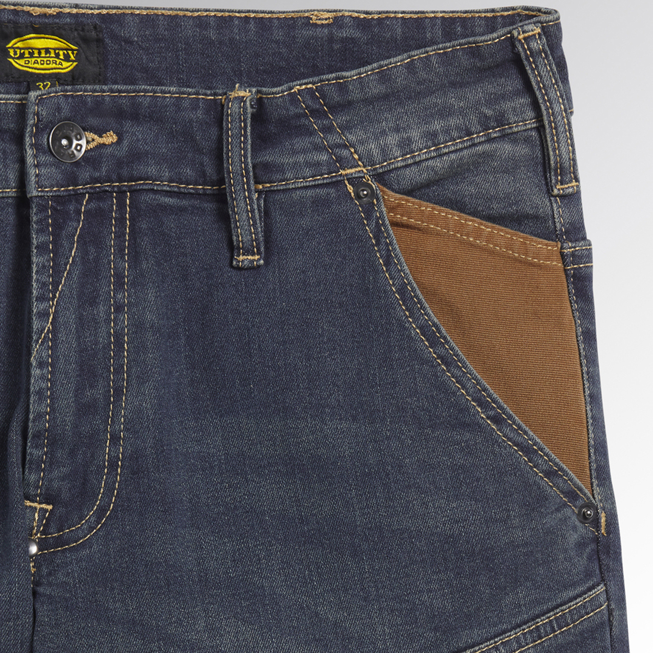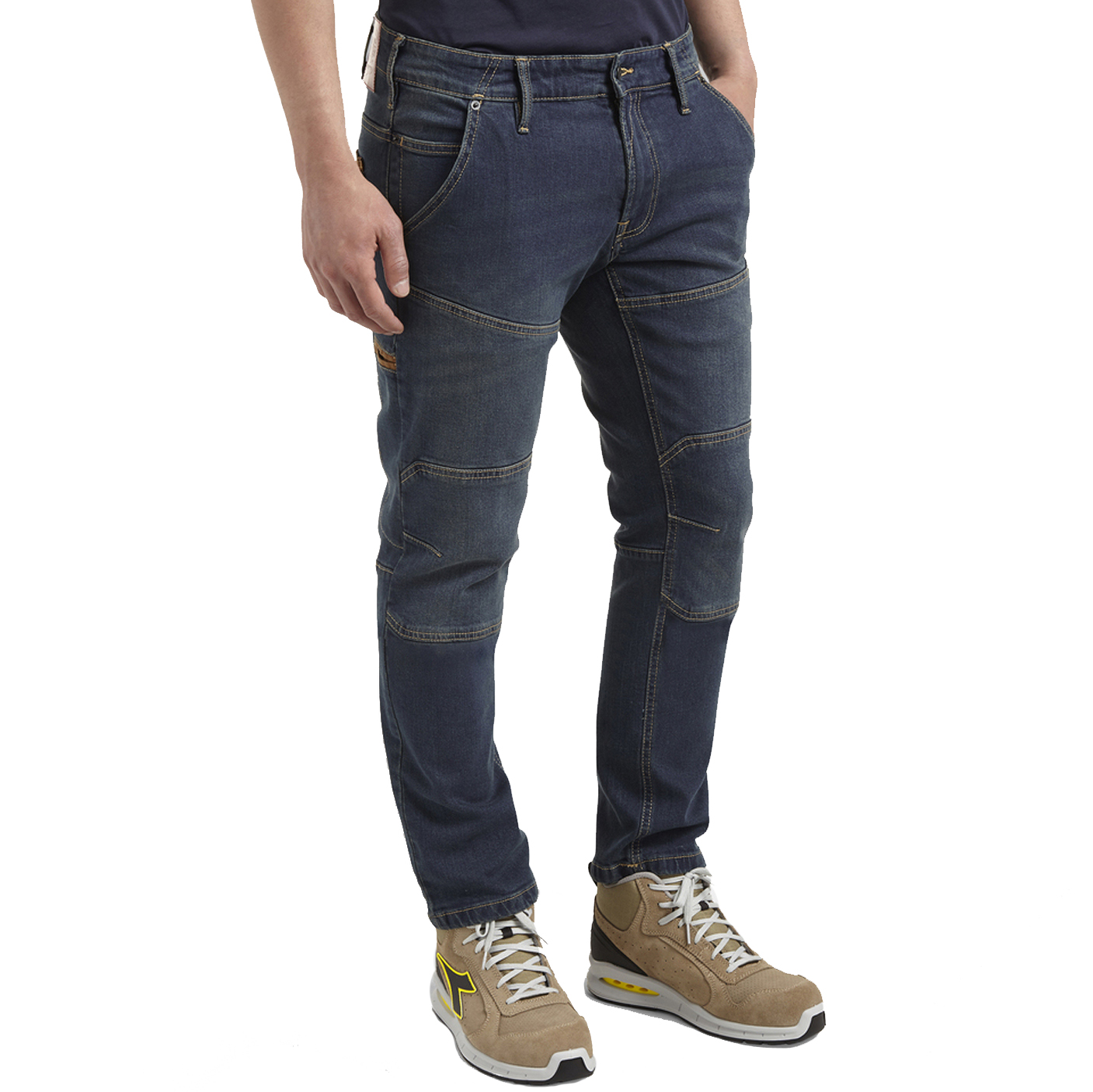 Stonewashed denim pracovní kalhoty se strečem kombinují odolnost, pohodlí a italský smysl pro detail, díky čemuž jsou ideální nejen pro náročné pracovní podmínky, ale i pro běžné nošení. Vyrobeny z kvalitního denimu složeného z 98 % bavlny a 2 % elastanu, nabízejí optimální pružnost a volnost pohybu. Díky speciálním úpravám tkaniny a preciznímu zpracování přinášejí vzhled inspirovaný klasickými italskými džínami, zatímco ergonomicky tvarovaná oblast kolen zajišťuje maximální komfort. Praktické prvky, jako jsou držák na svinovací metr a poutko na kladivo, zvyšují funkčnost kalhot, zatímco kontrastní plátěné detaily jim dodávají moderní vzhled. Díky svému stylovému designu jsou skvělou volbou nejen pro práci, ale i pro každodenní nošení, kdy oceníte jejich pohodlí a odolnost.
