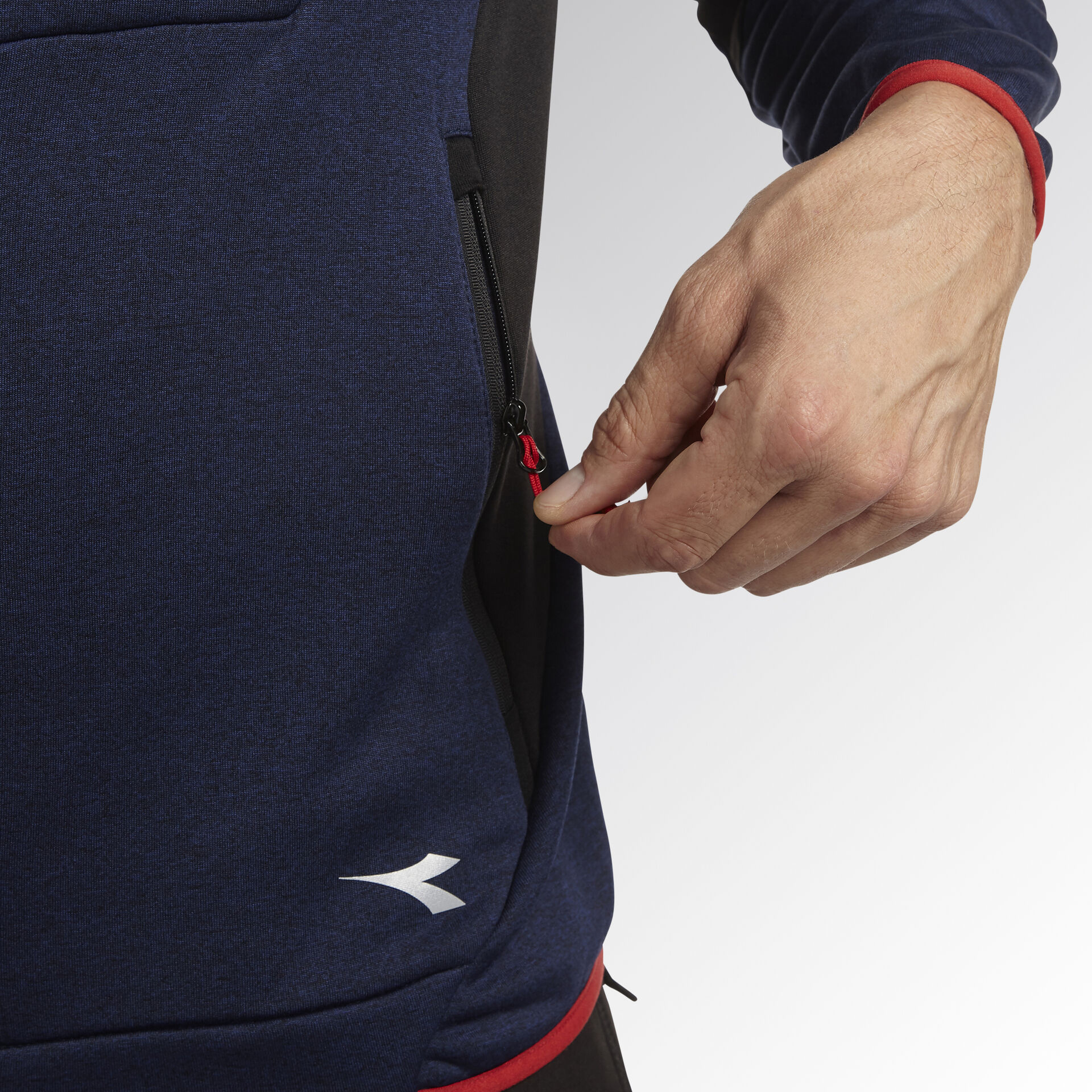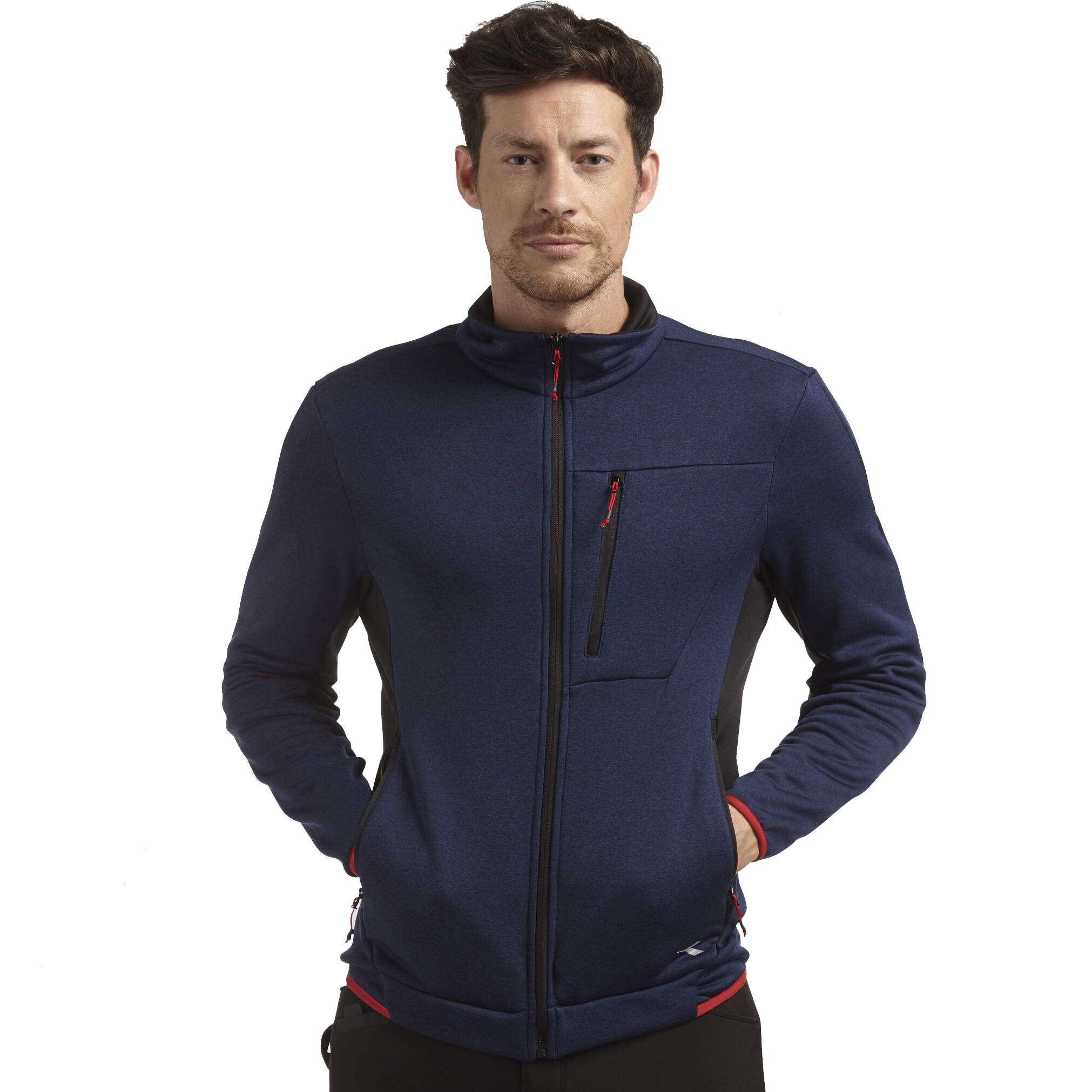 Super-strečový technický fleece s hladkým vnějškem a česaným vnitřkem. Ergonomický střih a moderní vzhled. Dvě boční kapsy a přední kapsa na zip. Kontrastní barevné detaily.