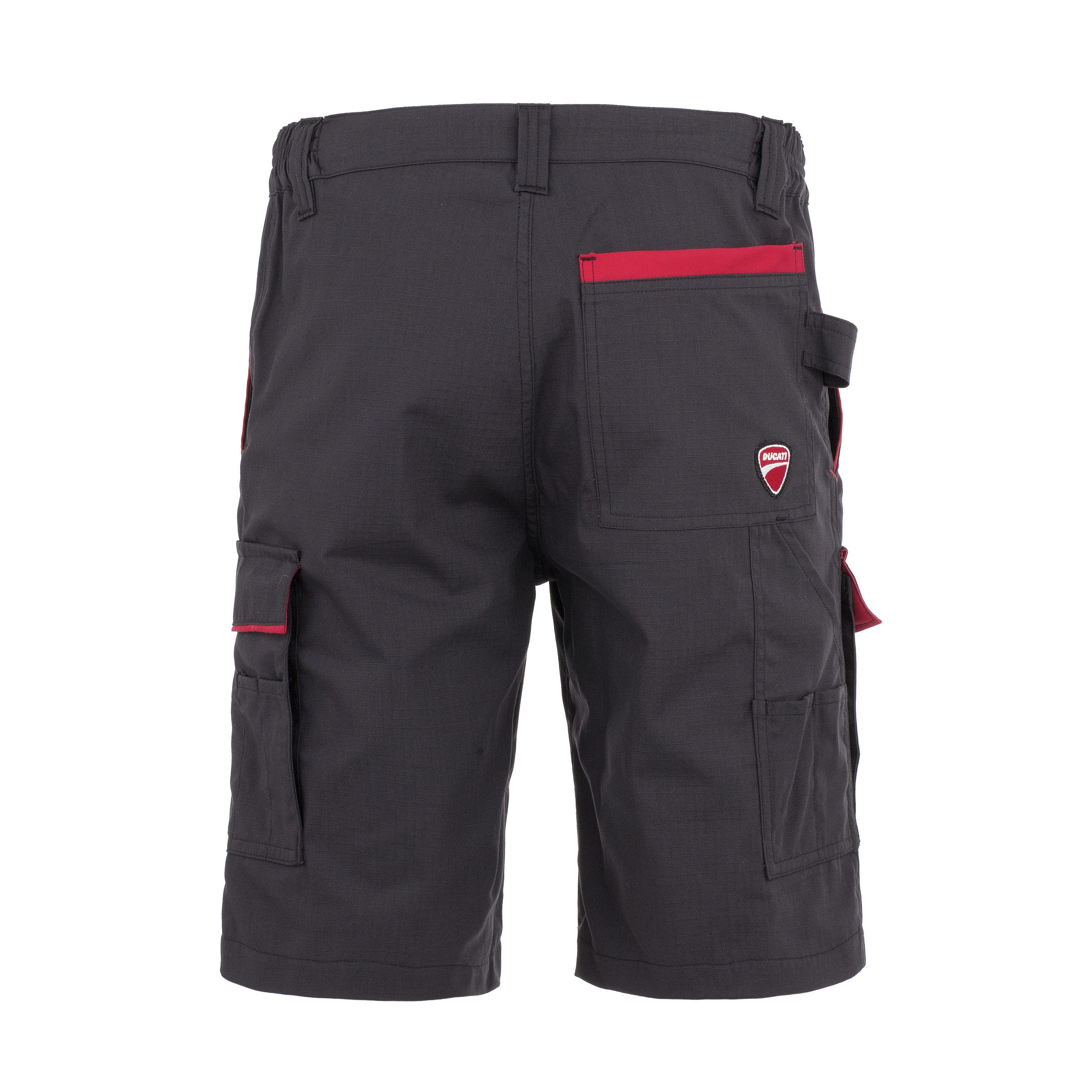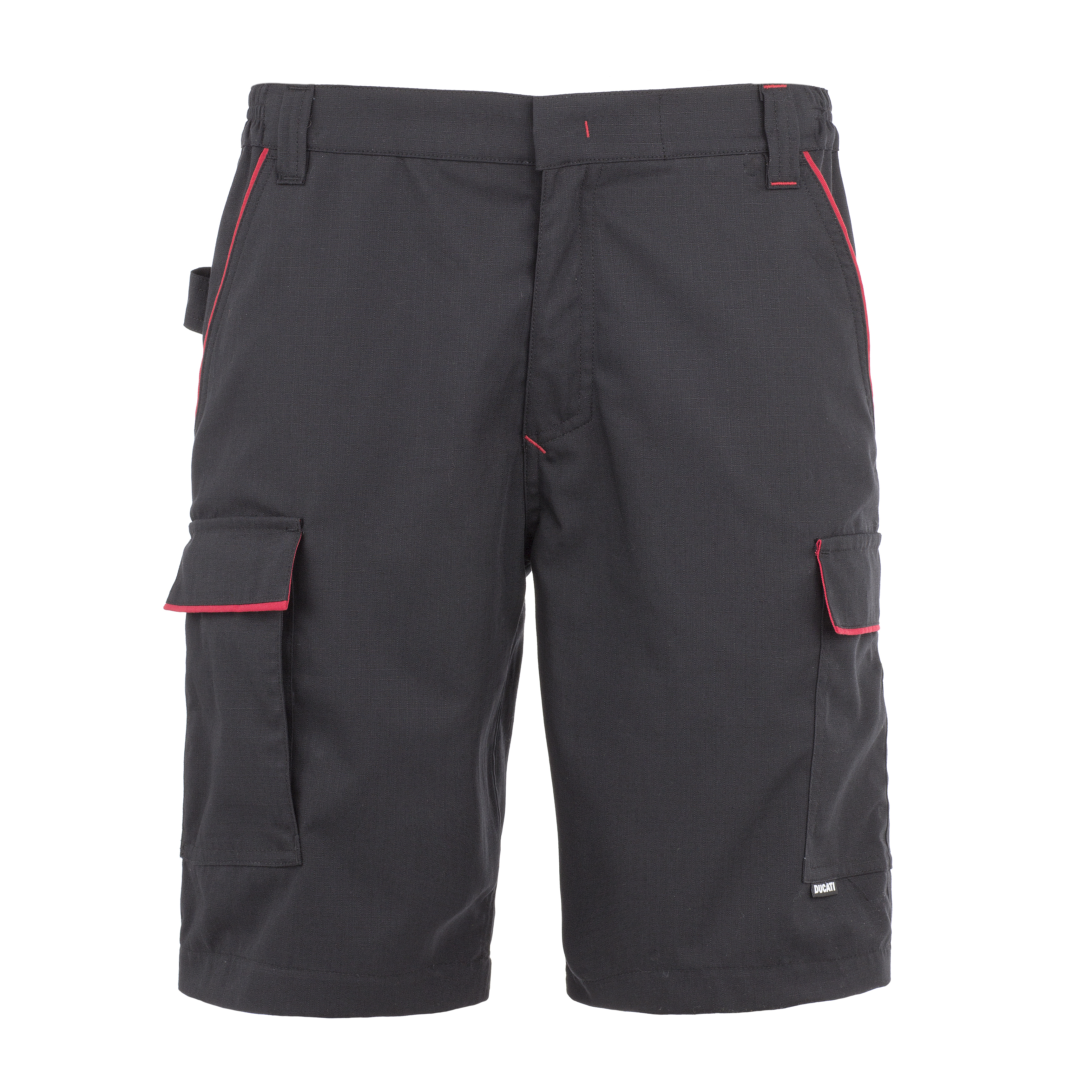 DUCATI INN-SCREW pracovní kraťasy RIPSTOP tkanina 60% bavlna - 40% polyester 200g, Elastický pas, krytý knoflík, 5 kapes (2 boční kapsy s klopou, 1 zadní kapsa, 2 klasické kapsy, kapsa na pravítko a nářadí. Zesílené poutko na kladivo, YKK® zip, Ducati kraťasy pro pravé profesionály, vysoká odolnost materiálu.