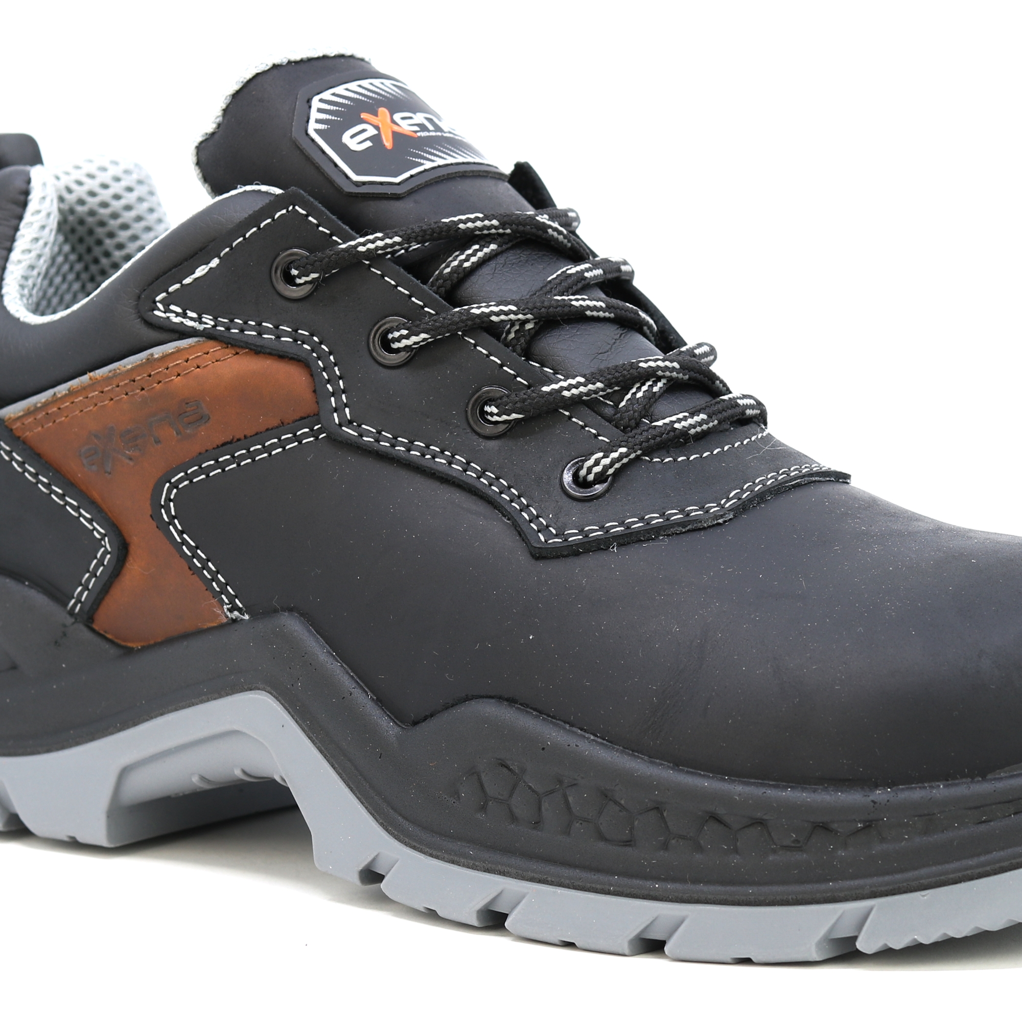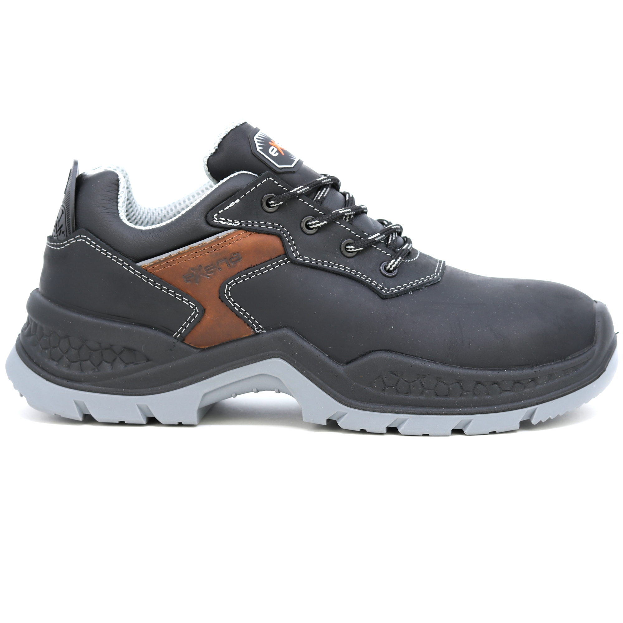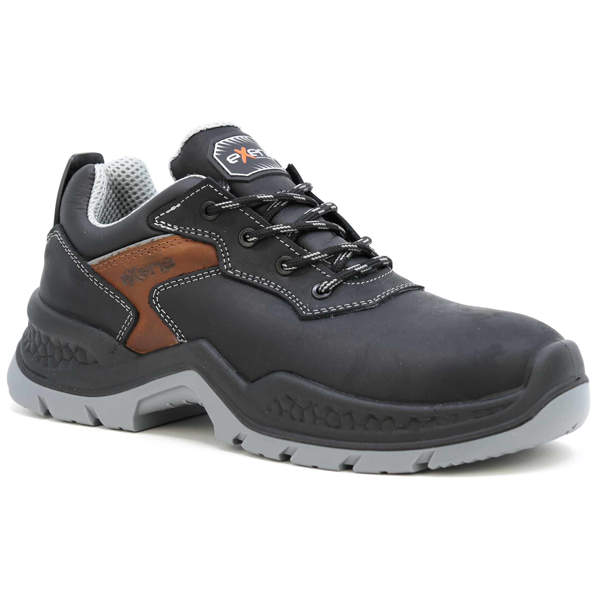 Kožené pracovní boty italské značky Exena se stupněm ochrany S3 jsou navrženy tak, aby vyhověly nejpřísnějším požadavkům kladeným na pracovní obuv. Špička obuvi obsahuje kompozitovou tužinku s kevlarovou stélkou pro účinnou ochranu proti mechanickému nárazu. Výhodou kompozitové tužinky je vlastnost, která zabraňuje přehřívání v letních měsících a zároveň vede k udržení tepelného komfortu při chladných dnech. Svršek boty je vyroben z kvalitní lícové usně. Vnitřek obuvi je opatřen prodyšnou textilií, která umožňuje noze volně dýchat při vysoké pracovní zátěži. Podrážka je vyrobena z antistatického a olejivzdorného materiálu. Pracovní obuv Exena udělá radost zákazníkům hledajícím u obuvi zejména kvalitu a pohodlí. Svršek: