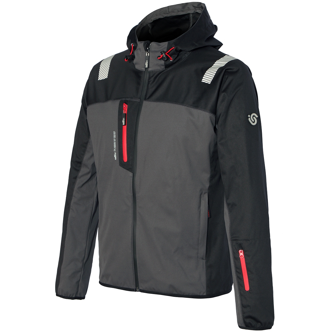 Nejmodernější softshellová generace, lehká a pohodlná, ideální pro práci nebo sportovní intenzitu v ne příliš chladných měsících. Oděv je opatřen čtyřmi kapsami, z nichž dvě mají zip stejně jako hlavní zip a velké vnitřní kapsy,. Vložky s reflexními prvky jsou součástí oděvu. Polyester s 8000 mm TPU membránou a 3000 mvp