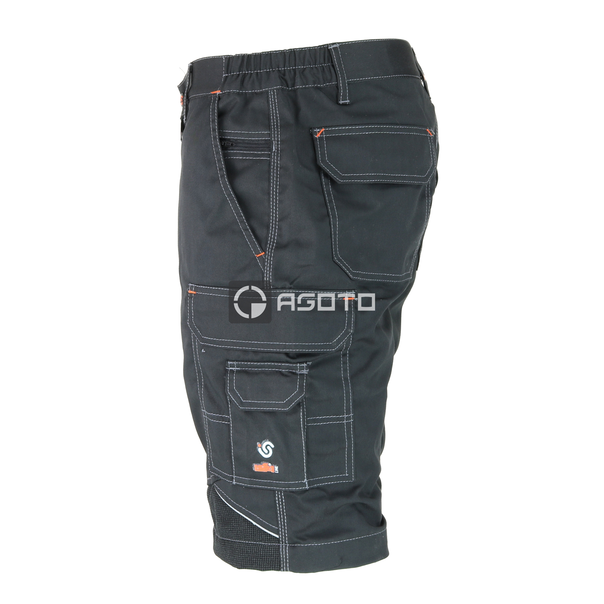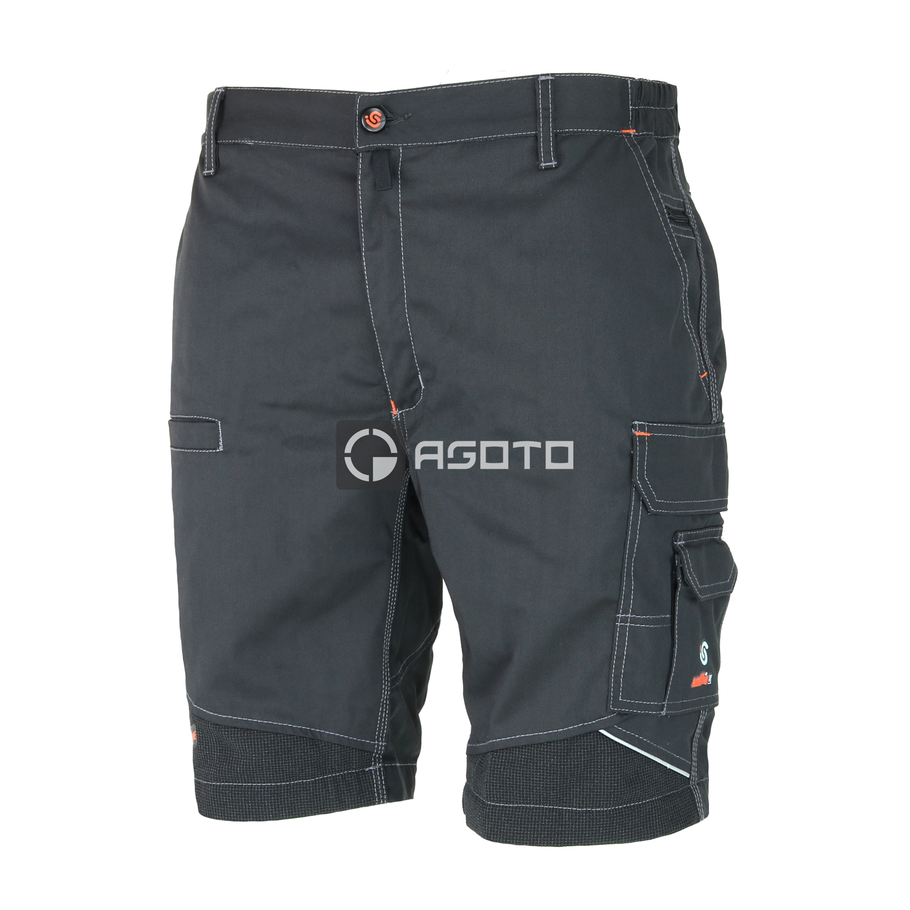Technické bermudy s anti-oděrem textilní vložky, paspulky a elasticky´ materiál; Produkt umožňuje pohodlí a zároveňv ypa dají stejně jako kalhoty ze sportovního světa. K dispozici je 9 kapes, včetně držáku mobilního telefonu. Trojitéprošívání a obzvláště odolná tkanina zaručují vynikající odolnost i při nejtěžší práci. Složení: 260 g / m2 - 65% poly / 32% bavlna / 3% spandex