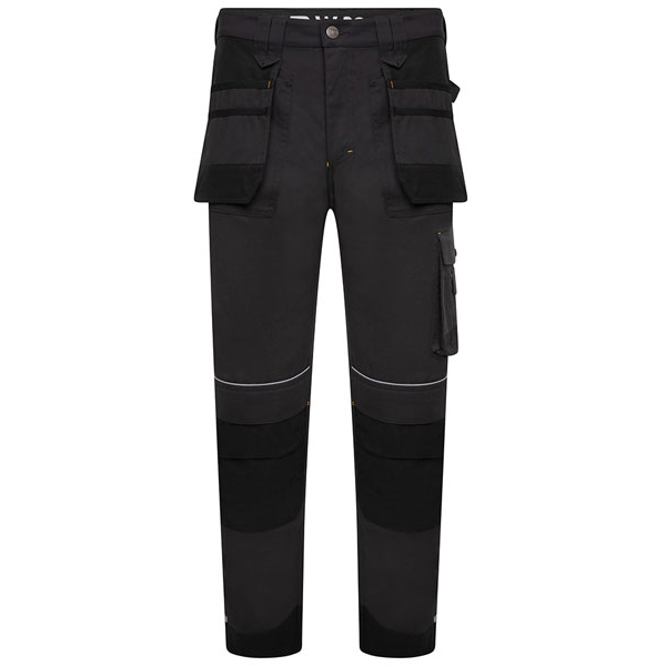 Pracovní kalhoty JCB Holster Stretch jsou navrženy pro maximální pohodlí a odolnost. Vyrobené z kombinace 64 % polyesteru, 34 % bavlny a 2 % spandexu s gramáží 275 g/m2, poskytují optimální pružnost a prodyšnost během každodenní práce. Kalhoty jsou vybaveny odolným zesílením z tkaniny Cordura® na spodním lemu, holster kapsách i kapsách na kolenní chrániče, což zajišťuje dlouhou životnost i v náročných podmínkách. Díky praktickému zapínání na YKK zip a množství kapes na obou nohavicích budete mít své nářadí a vybavení vždy po ruce. Zadní kapsy jsou navíc vybaveny suchým zipem pro bezpečné uchování věcí. Reflexní lemování zajišťuje lepší viditelnost a JCB branding dodává kalhotám stylový vzhled.