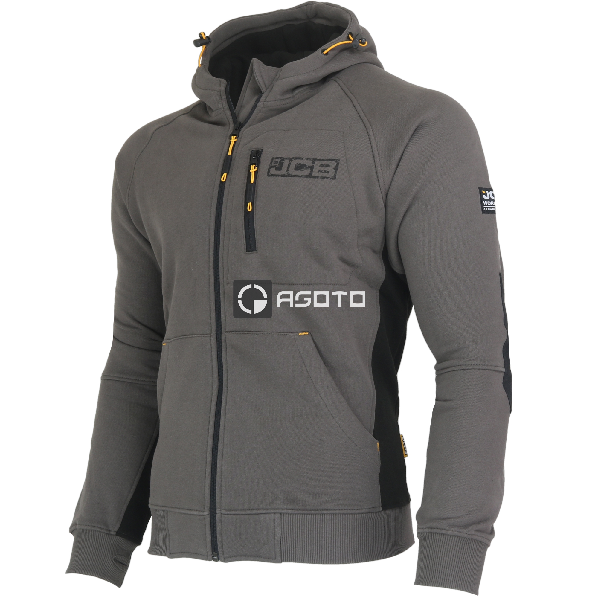 JCB Trade Zip Thru je šedá pánská mikina navržená pro pohodlí a odolnost při práci i volném čase. Vyrobena z kvalitní směsi materiálů (80 % bavlna, 20 % polyester) s gramáží 320 g/m2, nabízí příjemný pocit na dotek a zároveň dostatečnou odolnost. Lokty jsou vyztuženy látkou Cordura® pro vyšší životnost v náročných podmínkách. Mikina má vysoký límec s kapucí a nastavovacím bungee cordem, který zajišťuje ochranu proti větru. Přední YKK zip je skrytý a sahá až dolů, což usnadňuje oblékání a větrání. Na hrudi se nachází kapsa s YKK zipem, na které je umístěno logo JCB. Pro lepší pohodlí a praktičnost jsou do manžet všity otvory na palce.