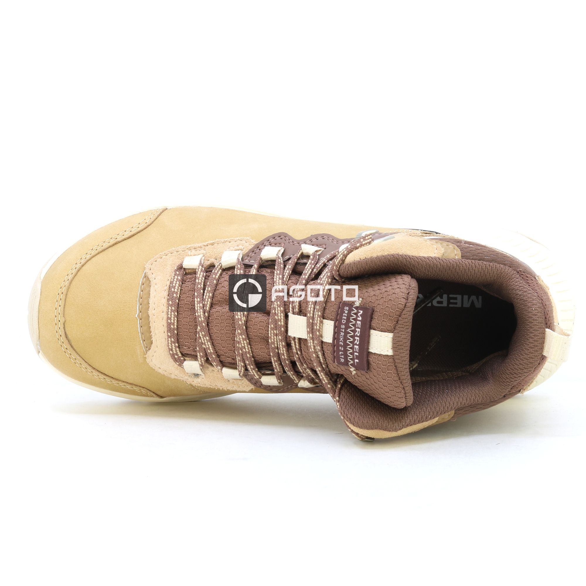 Merrell J038524 Speed Strike 2 Mid LTR WP Latte je pánská outdoor obuv, která kombinuje rychlý, atletický vzhled se spolehlivou ochranou a komfortem. Vysoce kvalitní svršek z plného (full-grain) semiše s voděodolným zpracováním chrání nohy před vlhkostí, přitom elegantně ladí s moderním designem. Nepromokavá membrána udrží vaše chodidla suchá, zatímco prodyšná podšívka z recyklované síťoviny podporuje optimální cirkulaci vzduchu. Sdílené recyklované materiály – od tkaniček a pout až po síťovinový potah stélky – odrážejí ekologické směřování značky. Polstrovaný límec a límec se záklopným jazykem zabraňují vniknutí nečistot, EVA mezipodešev tlumí nárazy a zajišťuje stabilitu, a odolná gumová podrážka Merrell poskytuje jistý záběr na různorodém terénu. Technologie Cleansport NXT™ přispívá k prevenci nepříjemných pachů. To vše činí tuto obuv perfektní volbou pro každého, kdo hledá stylovou, výkonnou a udržitelnou volbu pro terénní aktivity.