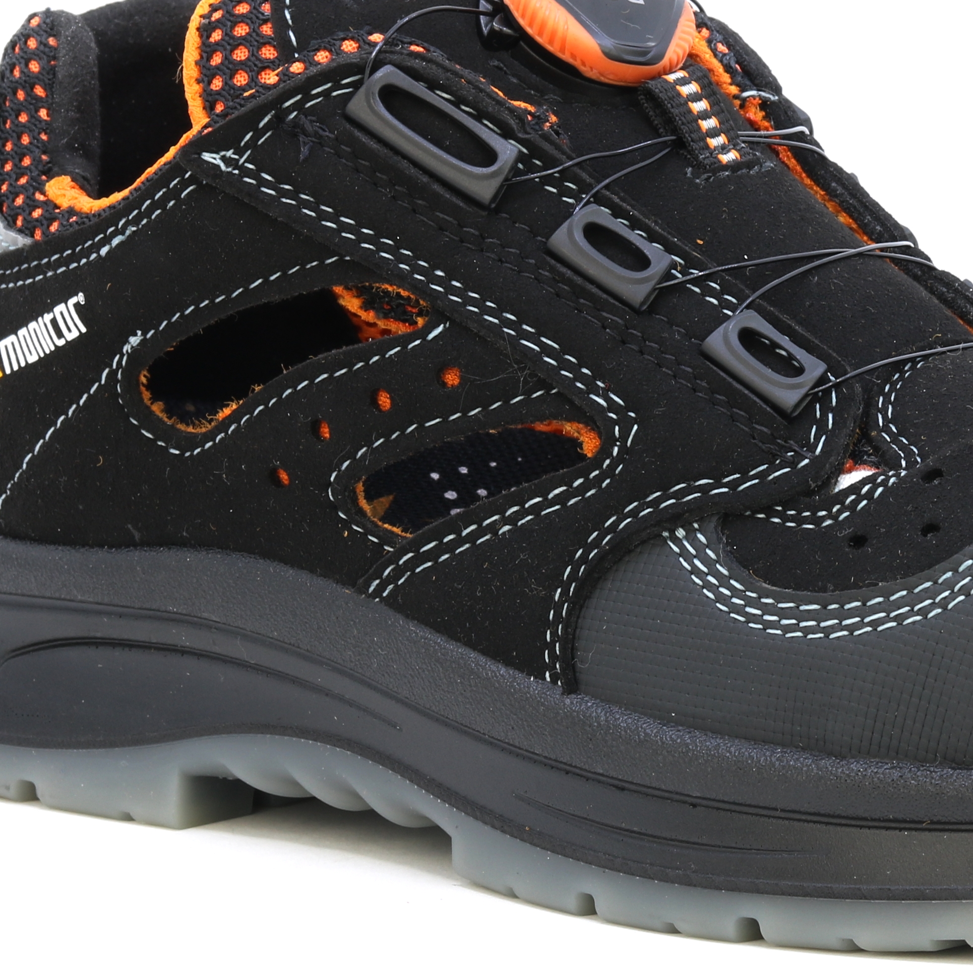 Monitor Aero z prémiové řady Monitor Momentum. Vyztužená špička a pata. Podešev třídy SRC je vyrobena z PU dvojí hustoty se vzorkem běhounu vhodným pro kluzké průmyslové podlahy i stavební práce s vysokým namáháním. Vnitřek má měkkou super-lex podšívku, která absorbuje vlhkost a dělá boty ještě pohodlnějšími pro nositele. Fit-Tech stélka s dodatečným odpružením a absorpcí vlhkosti. Obuv je vybavena BOA systémem pro rychlé a pohodlné nazouvání.