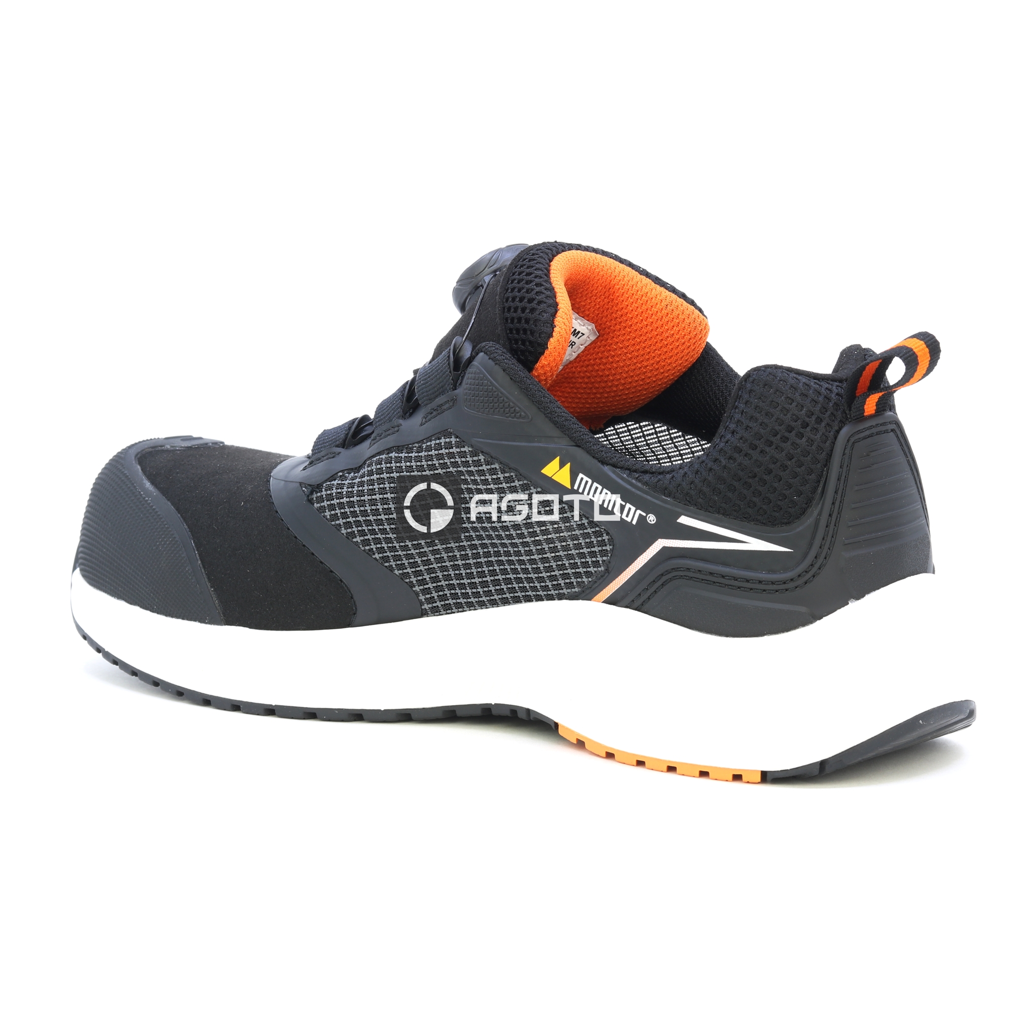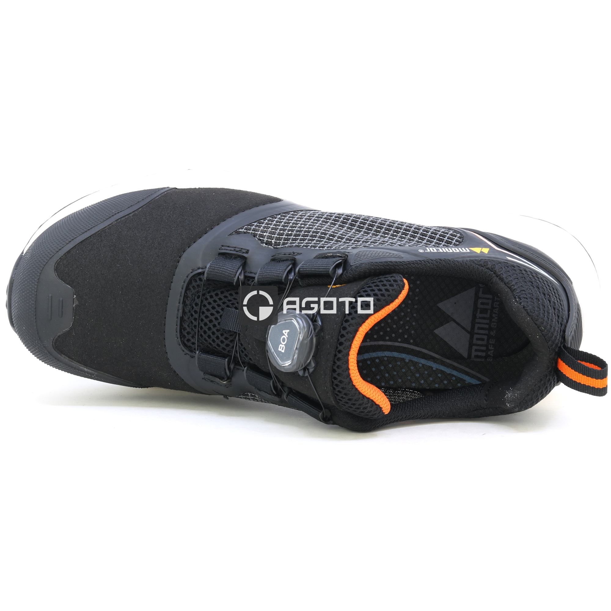 Lehká a zároveň odolná bezpečnostní obuv Monitor Recharge Air Safety Shoe kombinuje moderní technologie s maximálním komfortem. Díky kompozitní špičce a ochraně proti propíchnutí APT poskytuje vysokou bezpečnost, zatímco široký střih zajišťuje pohodlí po celý den. Svršek z prodyšné síťoviny je vyztužen v oblasti špičky a paty pro lepší odolnost. Mezipodešev z EVA tlumí nárazy a nitrilová gumová podešev zaručuje vynikající trakci na různých površích. Systém BOA® Fit umožňuje snadné a přesné nastavení utažení bez použití tkaniček. Tato obuv je zcela bez kovových prvků, schválená pro ESD prostředí a navržena pro maximální bezpečnost a komfort v náročných pracovních podmínkách.