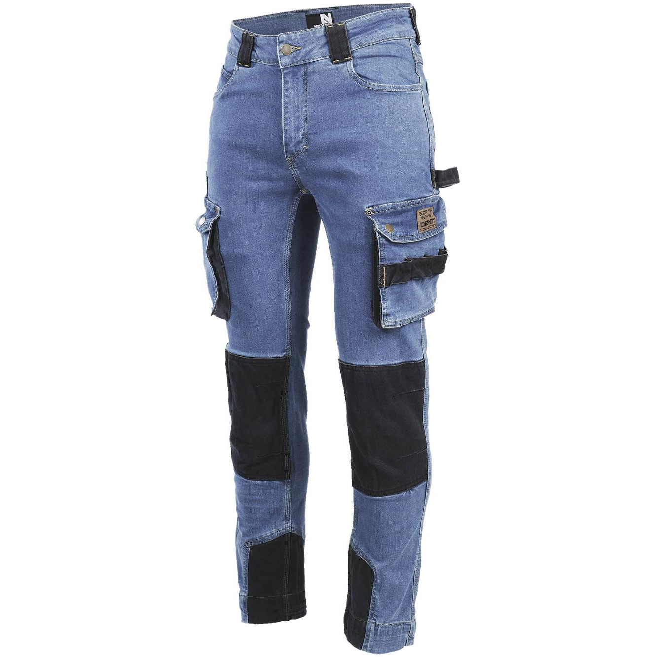 Pracovní džíny Nine Worths Neo jsou vyrobeny z odolného materiálu s hlavní látkou obsahující 98 % bavlny a 2 % elastanu (300 g/m2), doplněné zesíleními z Oxfordu 600D (65 % bavlna, 35 % polyester, 280 g/m2) v oblasti kolen, kapes a spodní části. Kalhoty mají vysoký zadní pas pro lepší ochranu, trojité švy pro maximální pevnost a osm praktických kapes (včetně kapes na drobnosti, metr a nářadí). Dále nabízí smyčky na zavěšení metru a nářadí a nastavitelnou délku nohavic, což z nich činí ideální pracovní oblečení pro náročné podmínky.