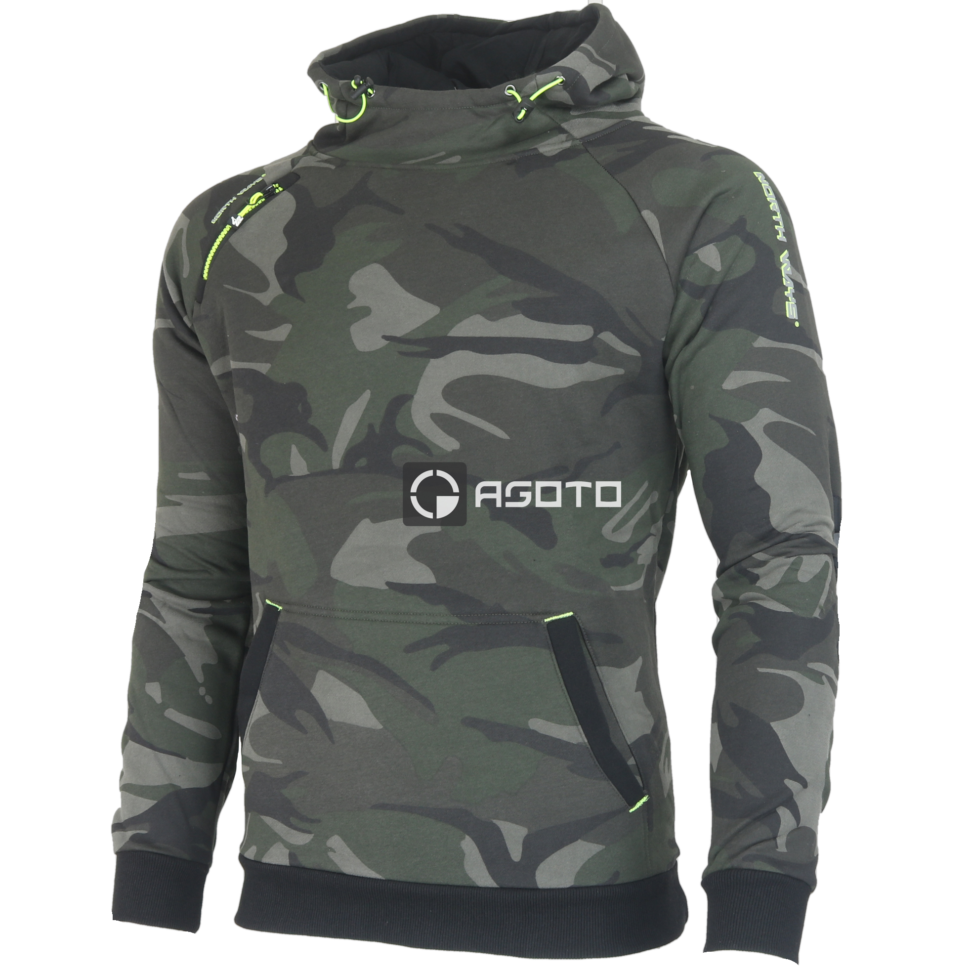Mikina camo North Ways. Pohodlná moderní mikina, která je ideální pro každého kdo chce dobře vypadat jak v práci, tak při každodenním nošení. SPECIFIKA: Nastavitelná kapuce, 2 kapsy: 1 kapsa na zip, 1 přední kapsa. FLEECE 80% Bavlna 20% Polyester, 310g/m2: FLEECE 65% Polyester 35% Bavlna, 310g/m2
