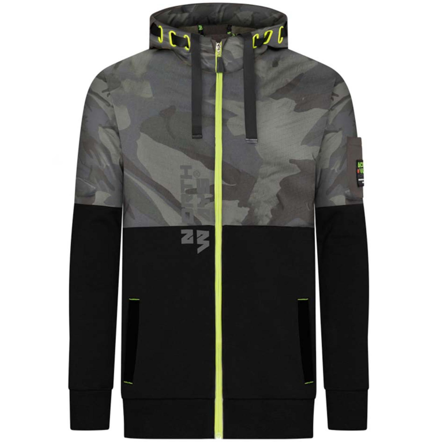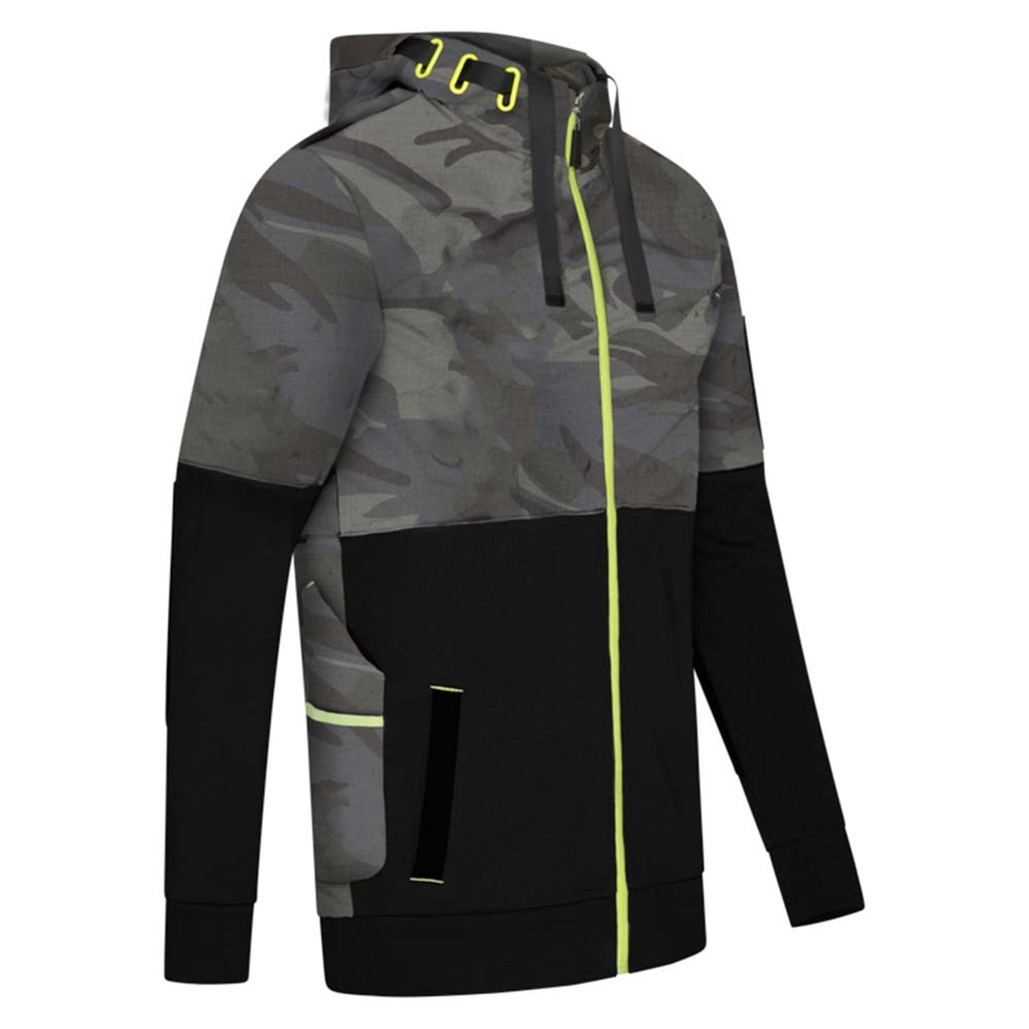 Moderní maskáčová mikina/bunda s kapucí a mnoha kapsami na drobné předměty. Výztuhy loktů, nastavitelná kapuce, krytí brady. 7 kapes: 2 kapsy na zip, 3 našité kapsy, 2 vnitřní kapsy. 70% Bavlna 30% Polyester