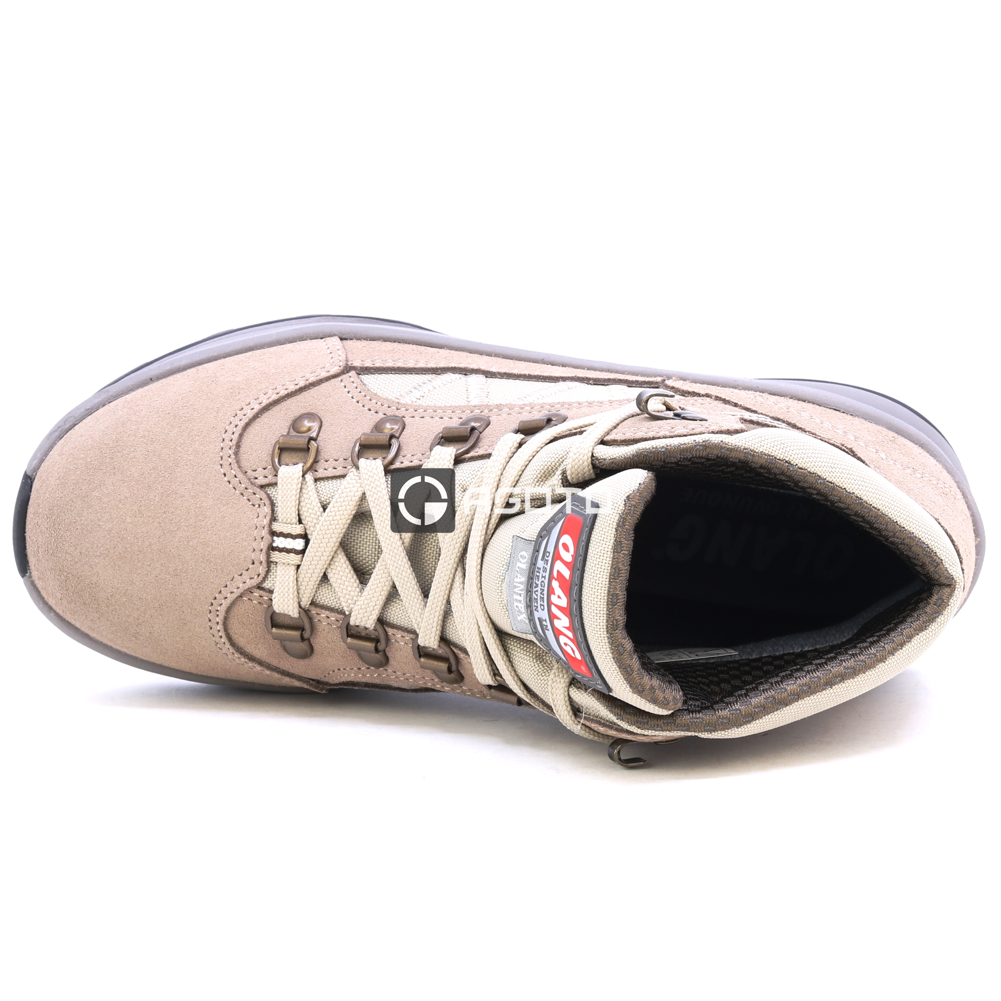 Dámská outdoorová obuv OLANG Alpine 814 v elegantním béžovém provedení spojuje odolnost, komfort a moderní design, který se skvěle hodí do přírody i pro každodenní nošení. Svršek z kvalitní přírodní kůže zajišťuje vysokou pevnost a dlouhou životnost, zatímco voděodolná membrána Olantex chrání nohy před vlhkostí a zároveň umožňuje jejich přirozené dýchání. Pevná podrážka s hlubokým vzorkem poskytuje spolehlivou trakci na různých typech povrchů, ať už se vydáte na horskou túru, lesní stezku nebo do městského prostředí. Anatomicky tvarovaná stélka a měkké polstrování zajišťují pohodlí i při celodenním nošení, což ocení aktivní ženy, které hledají spojení funkčnosti a stylu. Díky neutrálnímu béžovému odstínu je tento model snadno kombinovatelný s outdoorovým i volnočasovým oblečením, což z něj činí ideální volbu pro každou dobrodružnou výpravu.