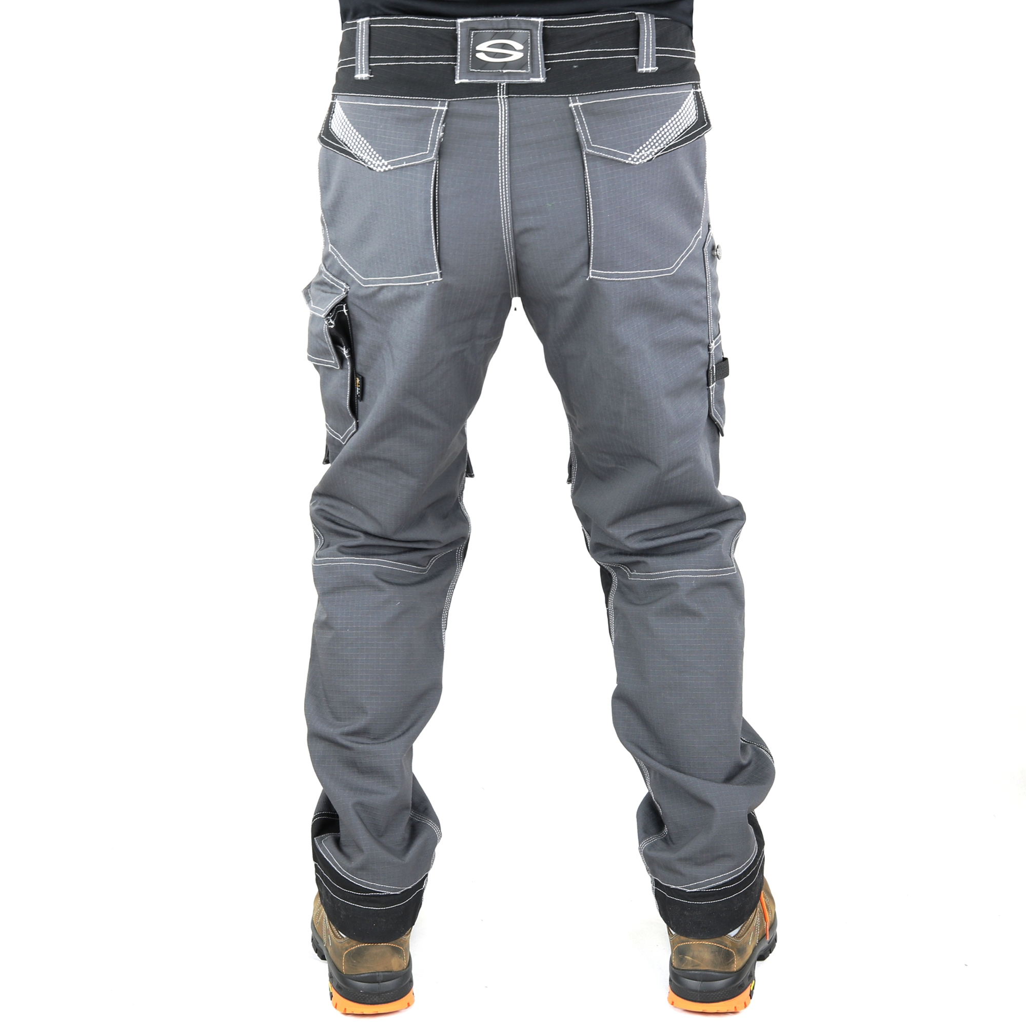 Série Hard Wear, Funkční pracovní kalhoty s více kapsami vyrobené ze 65% polyesteru, 35% bavlny, Ripstop, hmotnost 310 g / m2. Má dvě přední kapsy s integrovanou kapsou na mince, jednu multifunkční kapsu na nářadí, kapsu na telefon, kapsu na metr, dvě zadní kapsy s klopou a Velcro®, odnímatelný držák odznaku ID. Kapsy na kolenou vyztužené Cordura®, trojité prošívané švy, reflexní štítky, výsuvná délka o 4 cm, ergonomický střih. Zapínání YKK®.