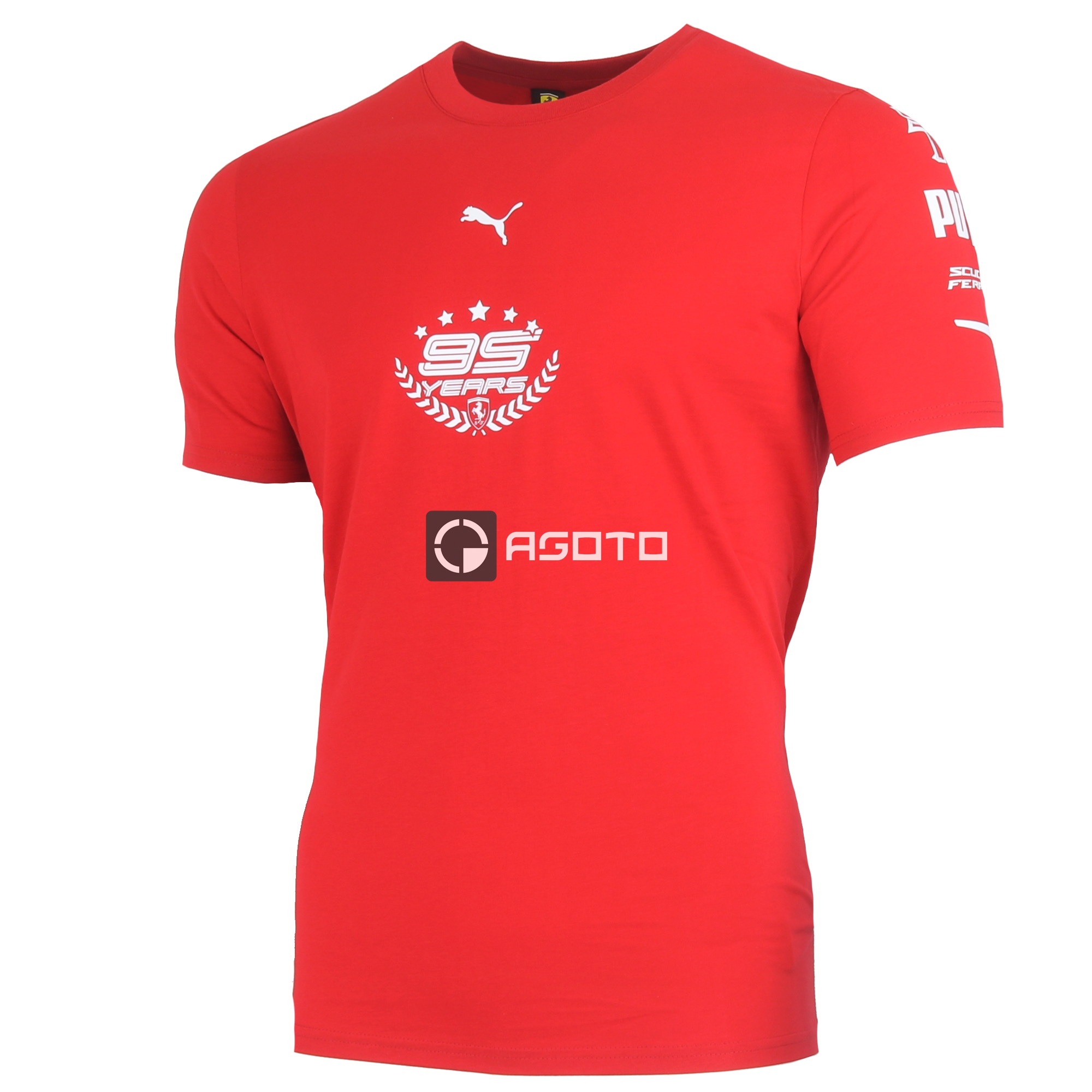 Tričko PUMA Scuderia Ferrari oslavuje 95 let slavného závodního týmu díky designu věnce Ferrari z 95 let inspirovaného motoristickým sportem na přední straně, zatímco loga PUMA a Ferrari na rukávech jsou přikývnutím zpět k tradičnímu vzhledu motorsportu. Přední a zadní strana s grafickým potiskem Scuderia Ferrari 95 let. Vícenásobné potisky rukávů s logem PUMA a Ferrari. Materiál: 100% Bavlna