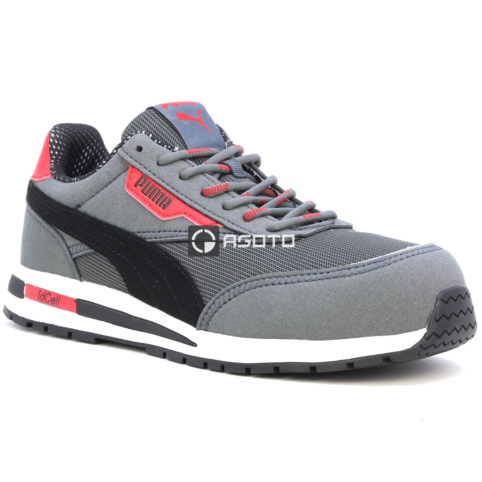 Pracovní obuv Puma RIDER GREY LOW je navržena pro profesionály, kteří vyžadují špičkovou bezpečnost, komfort a spolehlivost po celý pracovní den. Díky lehké ochranné špičce z laminátového skla a flexibilnímu nekovovému FAP®-vložkovému systému proti propíchnutí poskytuje obuv maximální ochranu bez zbytečné hmotnosti. Kovově nezávislá konstrukce splňuje normy ESD, takže je ideální pro citlivá pracovní prostředí. Prodyšný svršek z kombinace sandwich-meshe a odolné mikrovlákna zajistí výbornou cirkulaci vzduchu a dlouhou životnost i při náročném používání. Vnitřní podšívka BreathActive efektivně odvádí vlhkost a udržuje nohy suché, zatímco anatomicky tvarovaná stélka evercushion® CUSTOM FIT MID přináší pohodlí i při dlouhých směnách. Protiskluzová URBAN gumová podešev s technologií idCELL a integrovaným rotačním bodem zajišťuje skvělou přilnavost i na horkém povrchu do 300 °C, což z této obuvi činí ideálního společníka pro práci v průmyslu, logistice nebo dílnách.