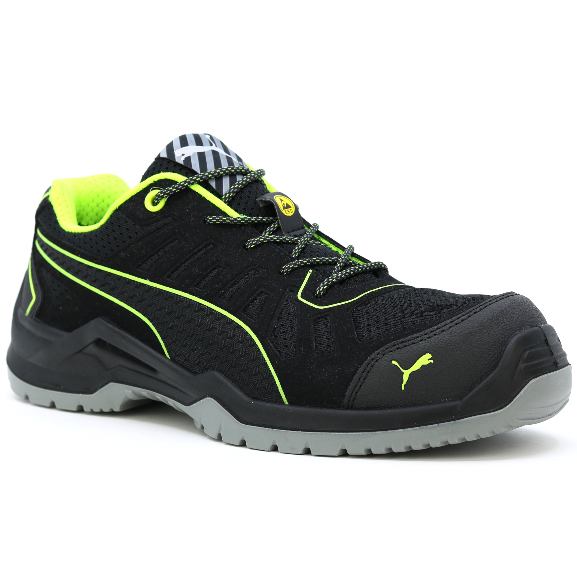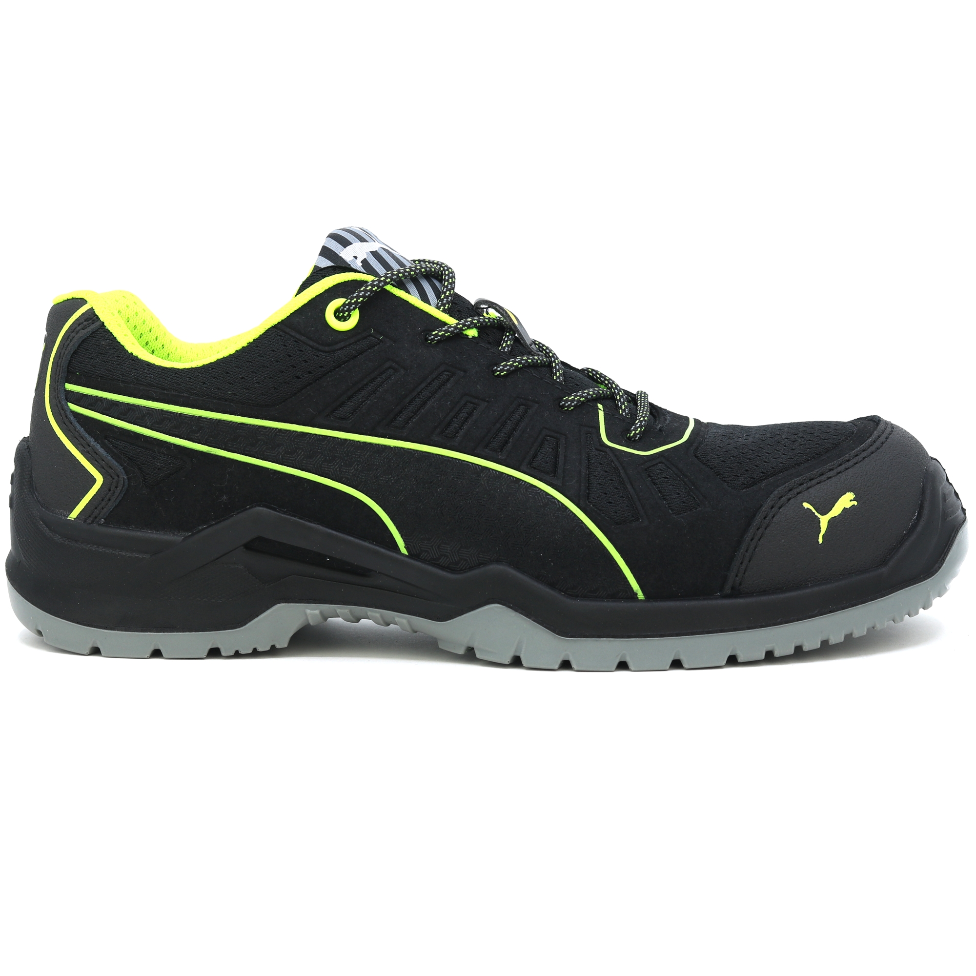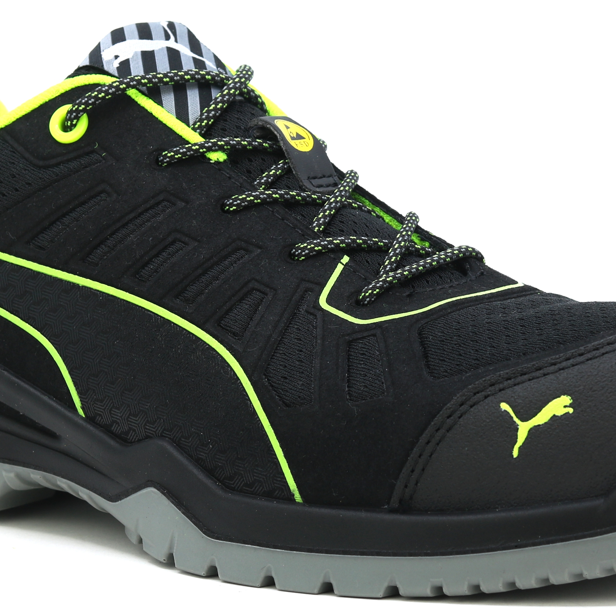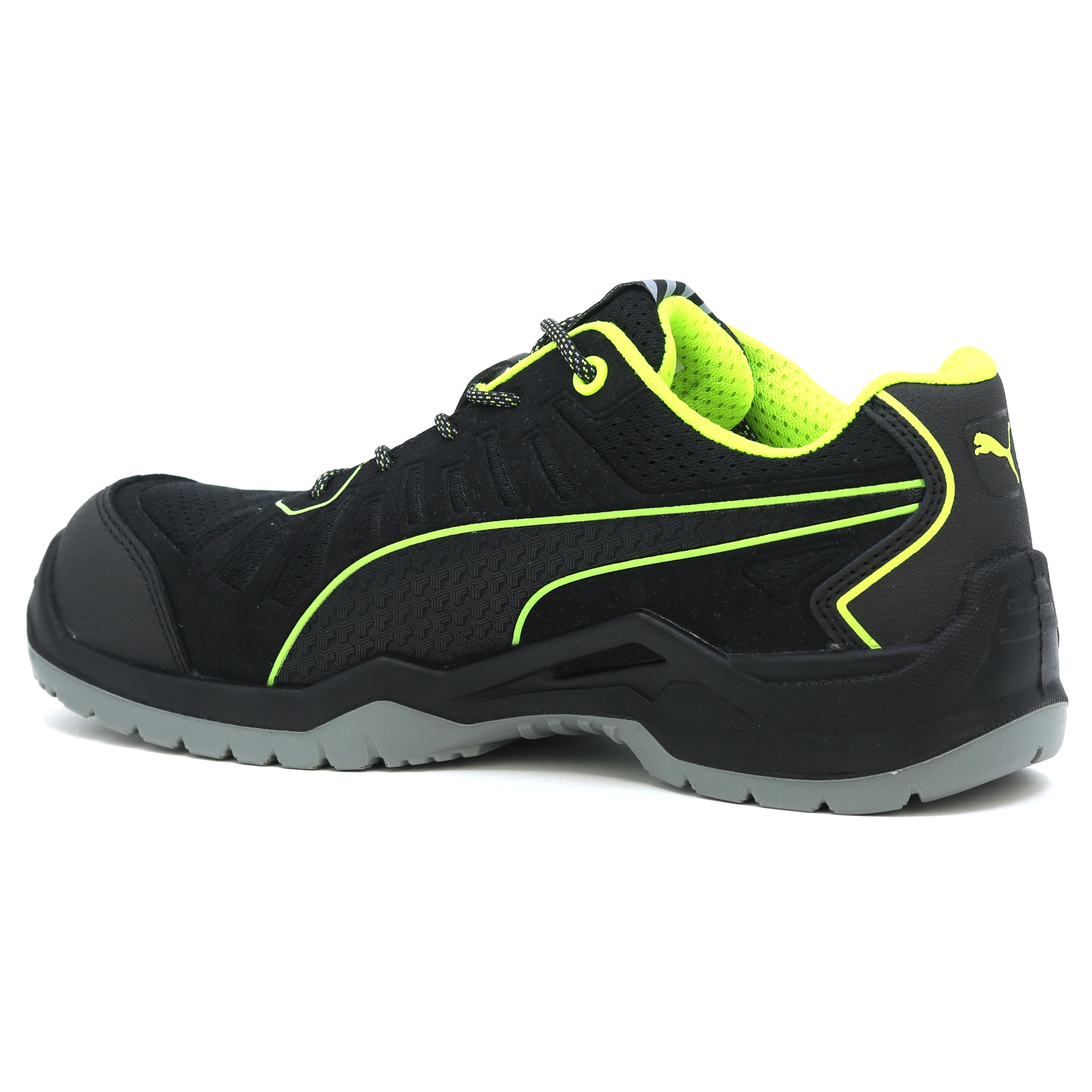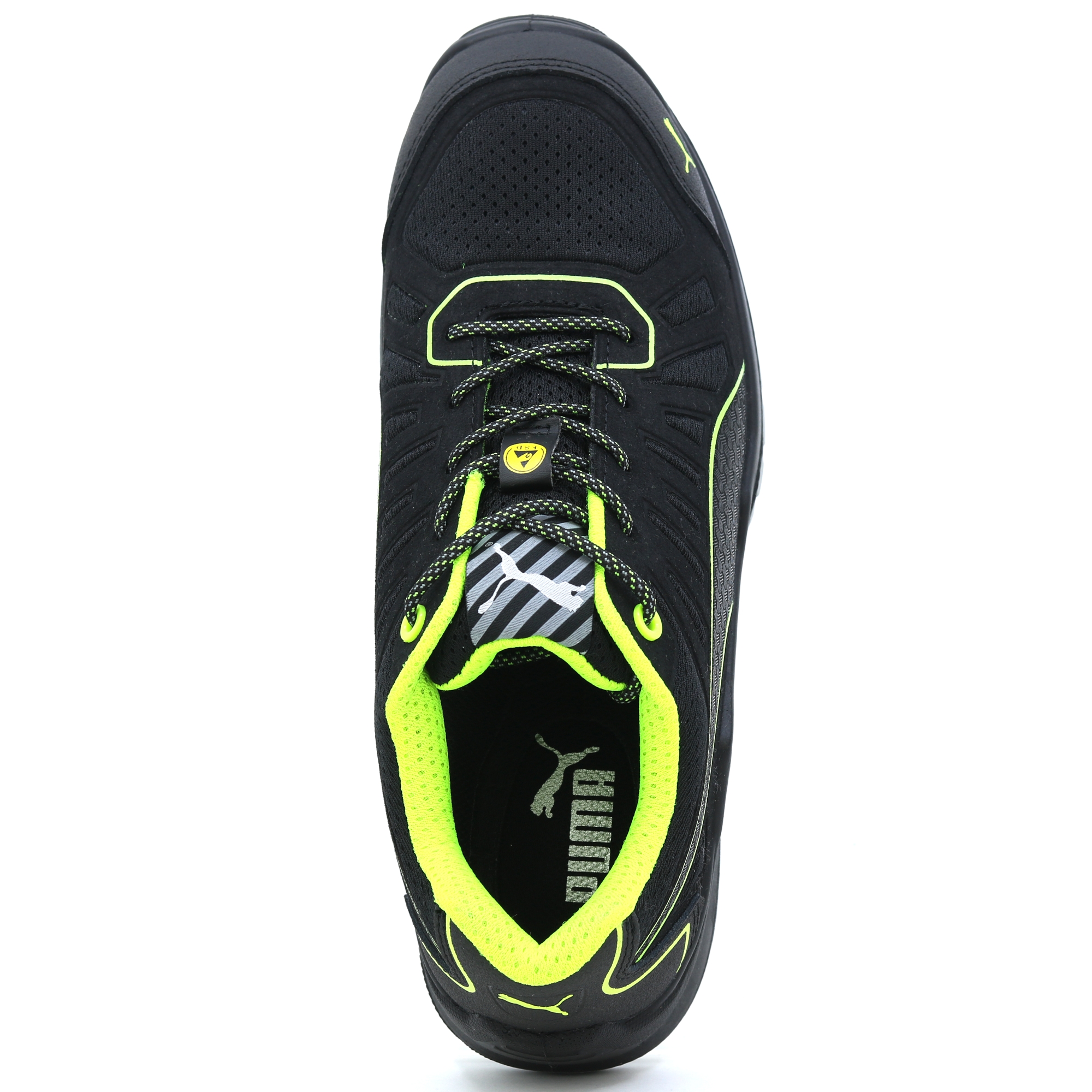 The metal free FUSE TC of the TECHNICS LINE Linie by PUMA SAFETY is characterized by high flexibility and noticeable light construction. This is achieved by the naturalFLEXMOTION® sole architecture. It combines the "Natural Running" concept with the newest safety shoe technology. The shaft of the S1P safety shoe with ESD characterictics has been produced with support of the FUSE.TEC® technology. Hereby, reinforcing elements are welded seamlessly on the basis textile material. Thus, strongly-demanded areas like flex zones do not need seams at all. The shoe becomes more flexible, more durable and has a perfect fit. The inserted evercushion® BA footbed made of foam with open pores takes liquid away from the foot and provides together with the breathable BreathActive functional lining a comfortable foot climate during the whole day. The especially developed wafer profil guarantees hereby the best possible grip, in particular on smooth industry floors.