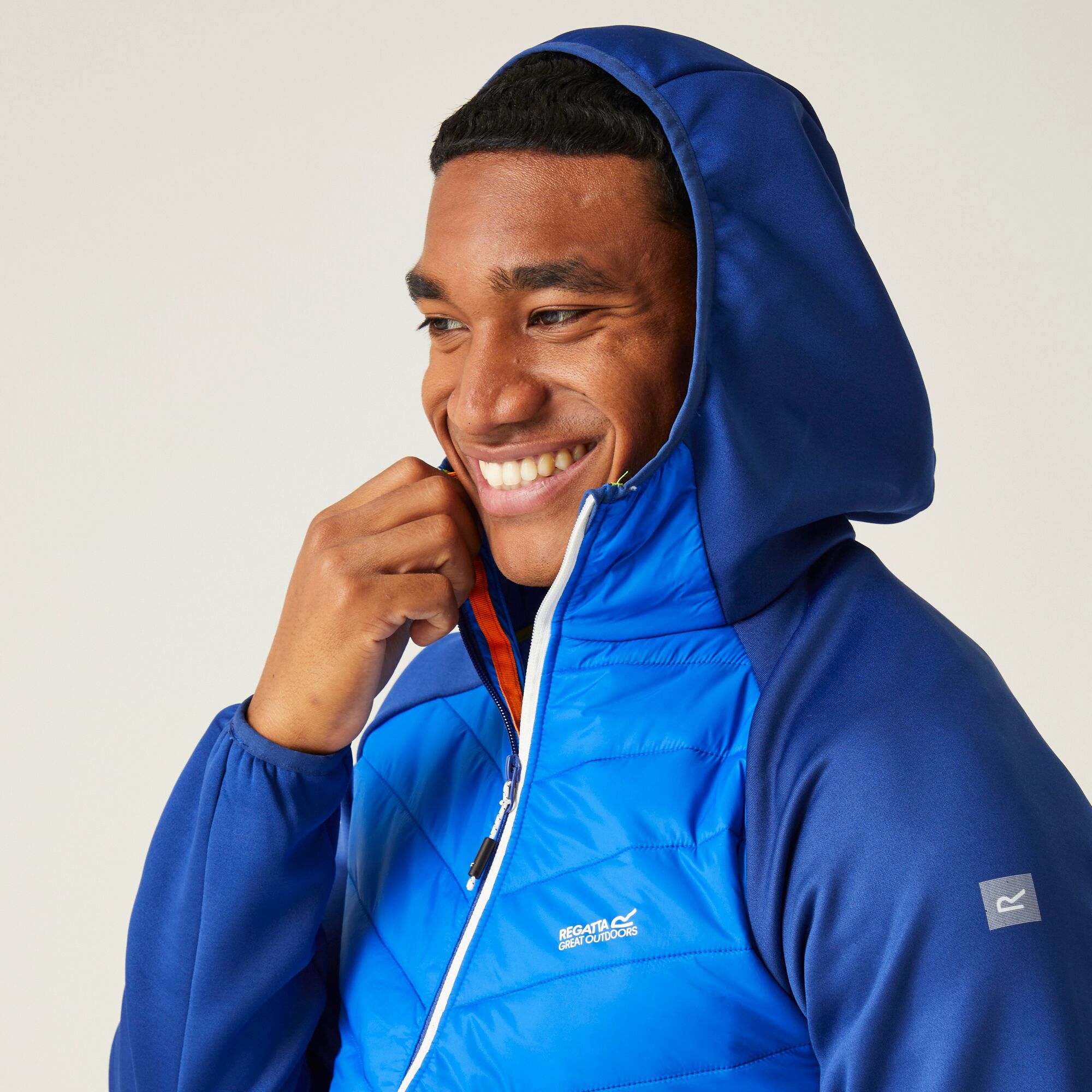 Pánská bunda Regatta Andreson VIII Hybrid v modré barvě z kolekce Men’s Outdoor Active je ideální volbou jak do městského prostředí, tak pro outdoorové aktivity. Rukávy, boční panely a kapuce jsou vyrobeny z pružné tkaniny Extol Stretch, která umožňuje pohodlný a volný pohyb bez omezení. Díky technologii Warmloft bunda poskytuje dostatečný tepelný komfort i při chladném a nevlídném počasí, zatímco povrchová úprava DWR zaručuje vodoodpudivost a ochranu proti dešti. Izolační technologie Thermo-Guard účinně zabraňuje pronikání studeného vzduchu dovnitř, takže zůstanete v teple a pohodlí i během náročných venkovních aktivit. Tato modrá hybridní bunda kombinuje funkčnost, moderní design a spolehlivou ochranu, díky čemuž je skvělým společníkem pro každý den.
