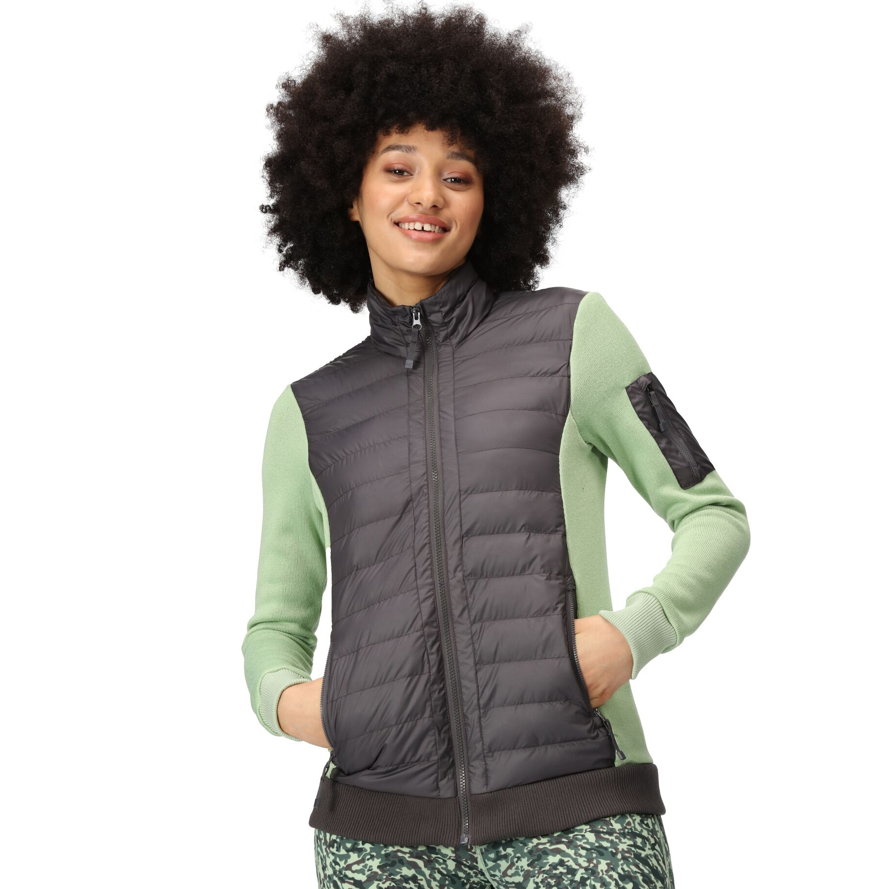 Dámská mikina Regatta Colliston je trendová lehce zateplená sportovní mikina. Zadní díl je z pružného úpletu, přední díl chrání proti větru. Mikina má stojáček, dvě boční kapsy a jednu kapsu na rukávu na zip. Lze nosit jako přechodovou bundu Jaro-podzim, nebo jako zateplující vrstvu v zimě pod membránovou bundu. Materiál: 100% polyester.