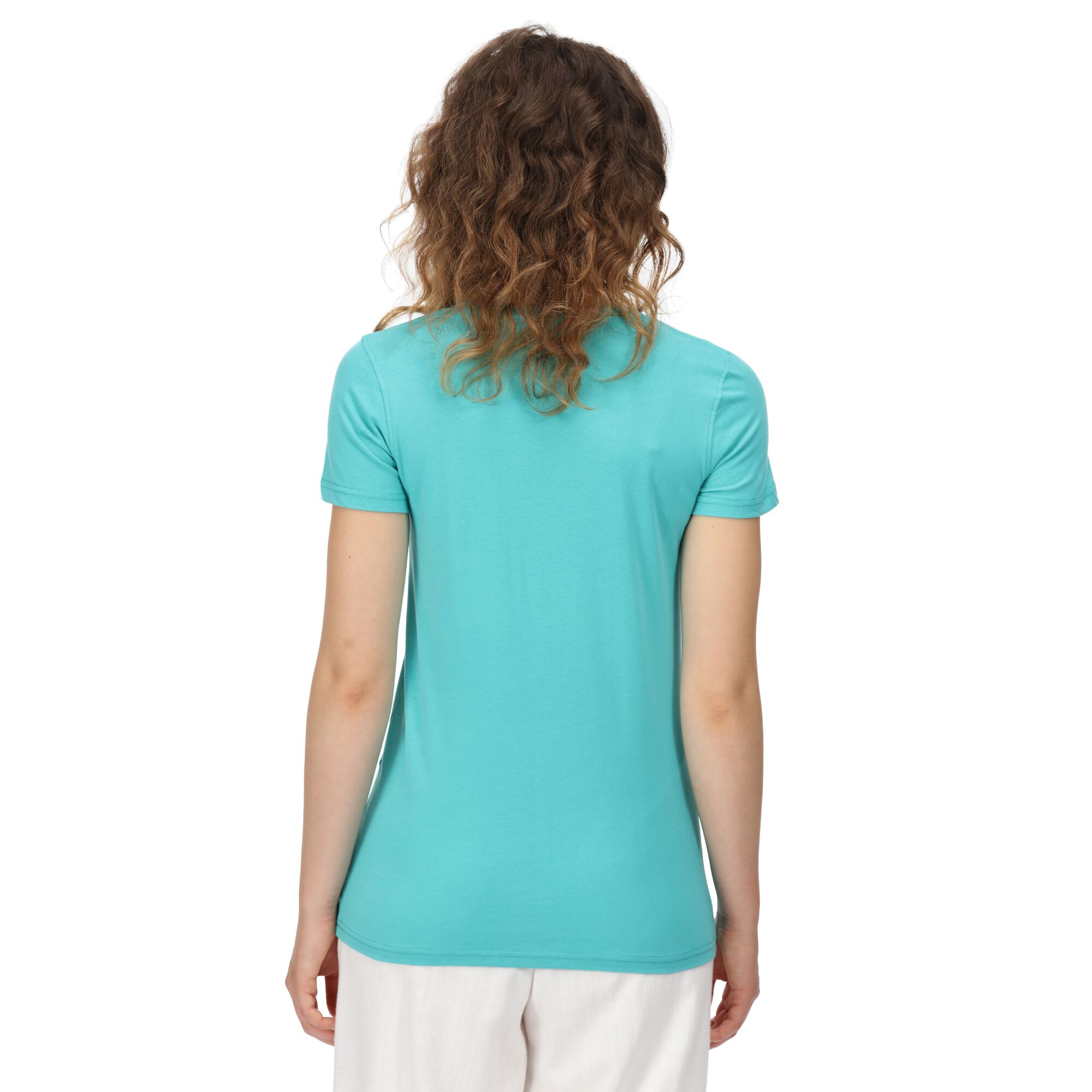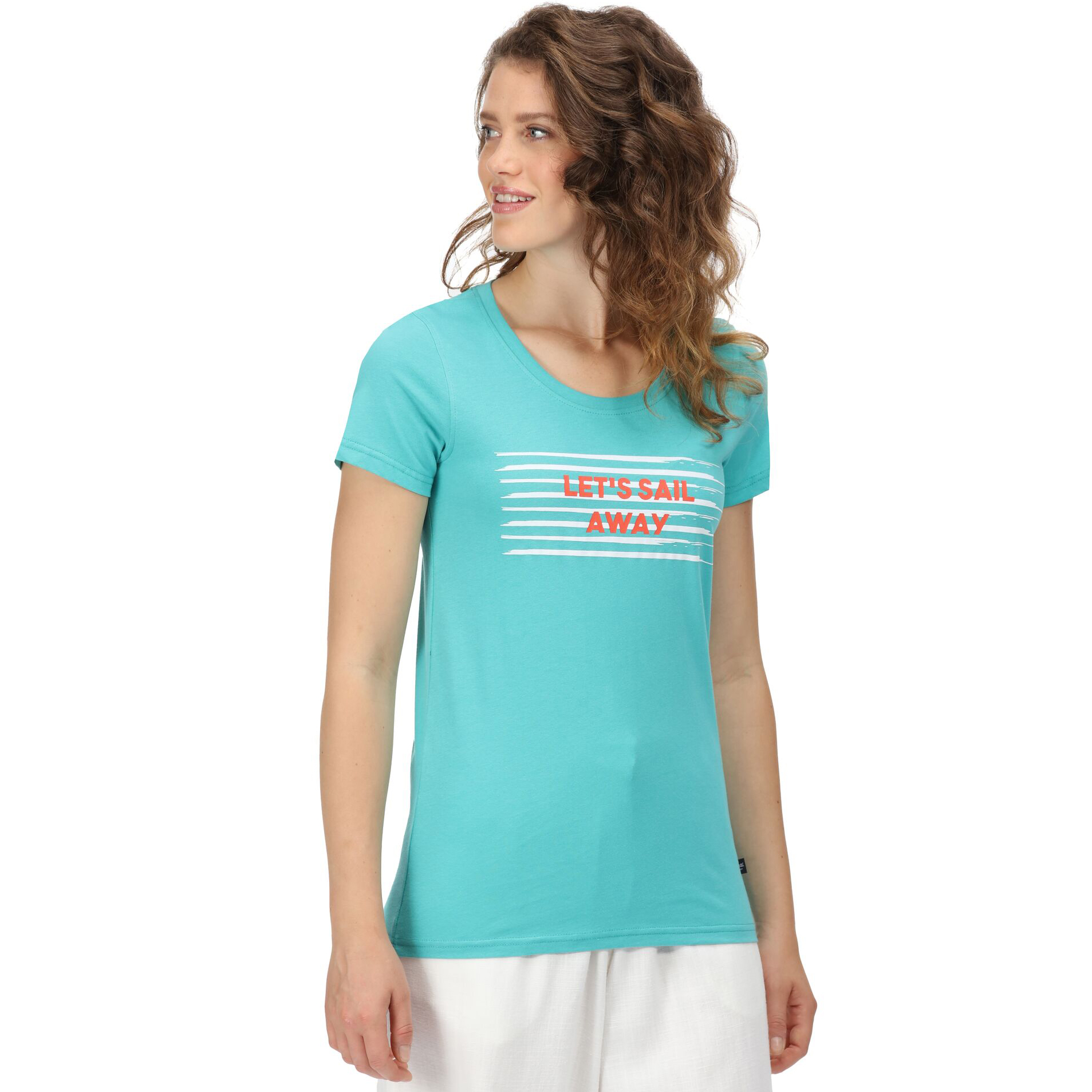Dámské tričko s krátkým rukávem Regatta Filandra VI. Technologie Coolweave s chladícím účinkem. Bavlněná vlákna mají zcela přirozený chladicí účinek přímo na kůži. Potisk na přední straně. Materiál: 100% bavlna.