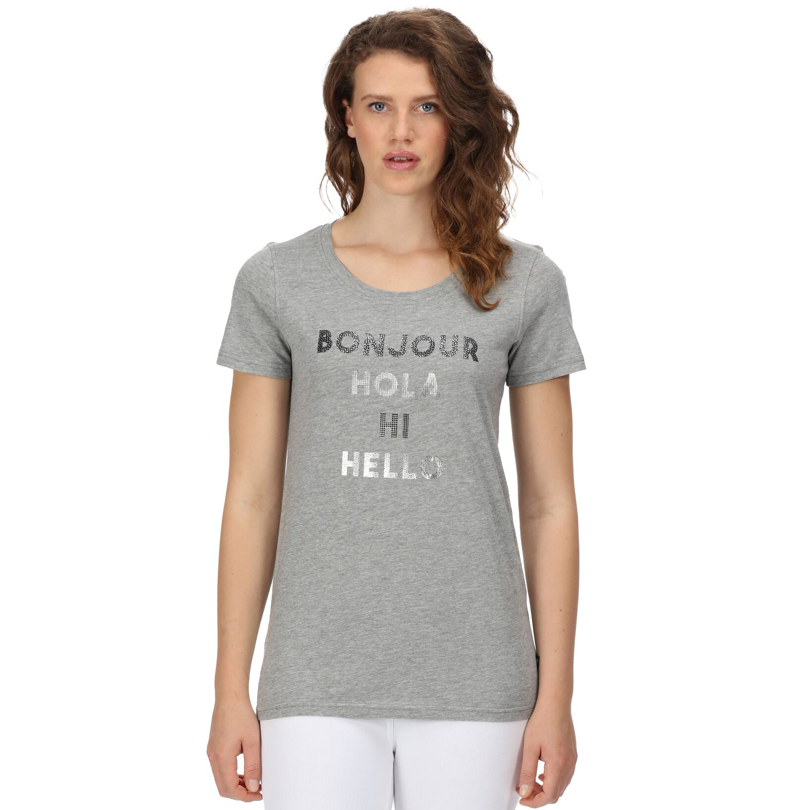 Dámské tričko s krátkým rukávem Regatta Filandra VI. Technologie Coolweave s chladícím účinkem. Bavlněná vlákna mají zcela přirozený chladicí účinek přímo na kůži. Potisk na přední straně. Materiál: 100% bavlna.