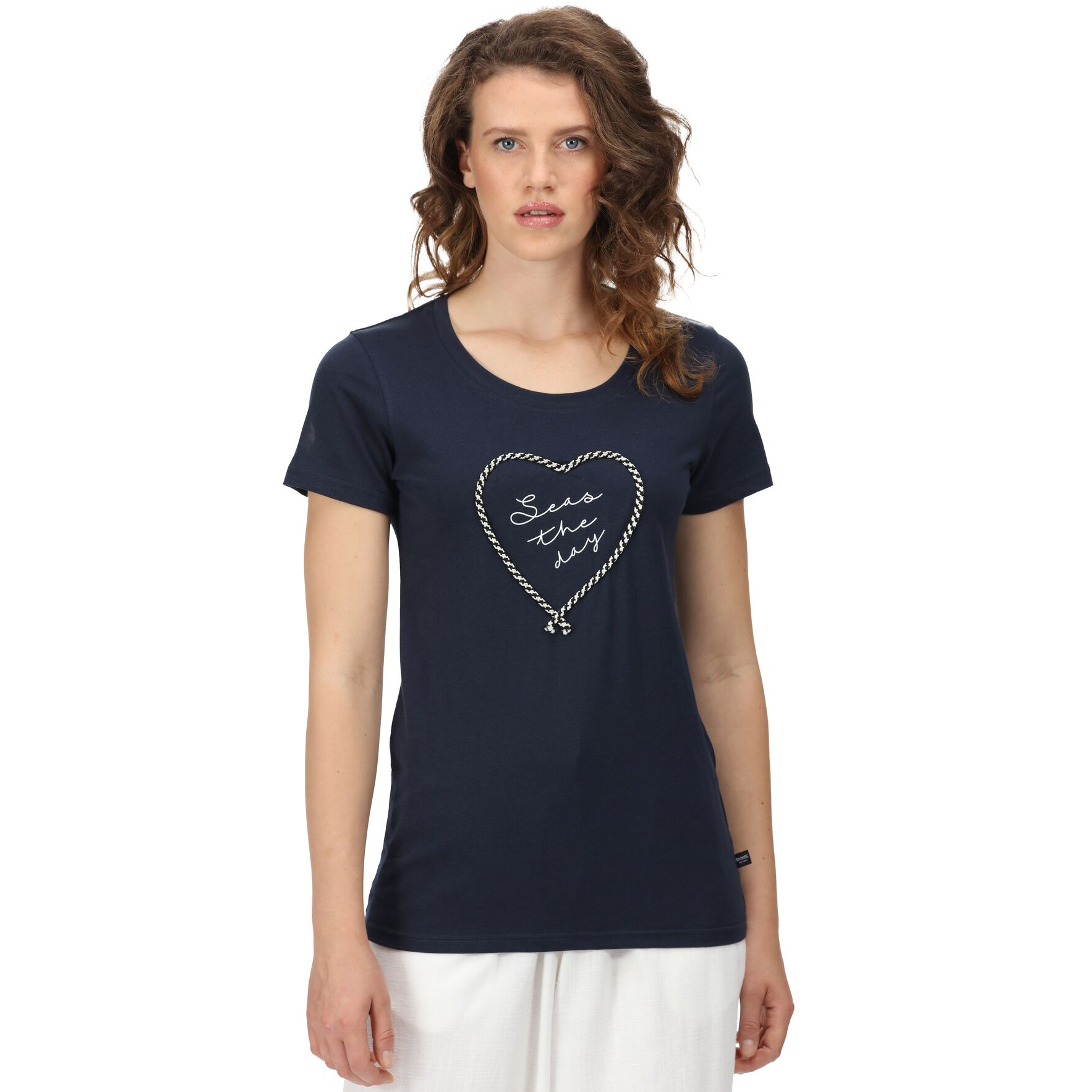Dámské tričko s krátkým rukávem Regatta Filandra VI. Technologie Coolweave s chladícím účinkem. Bavlněná vlákna mají zcela přirozený chladicí účinek přímo na kůži. Potisk na přední straně. Materiál: 100% bavlna.