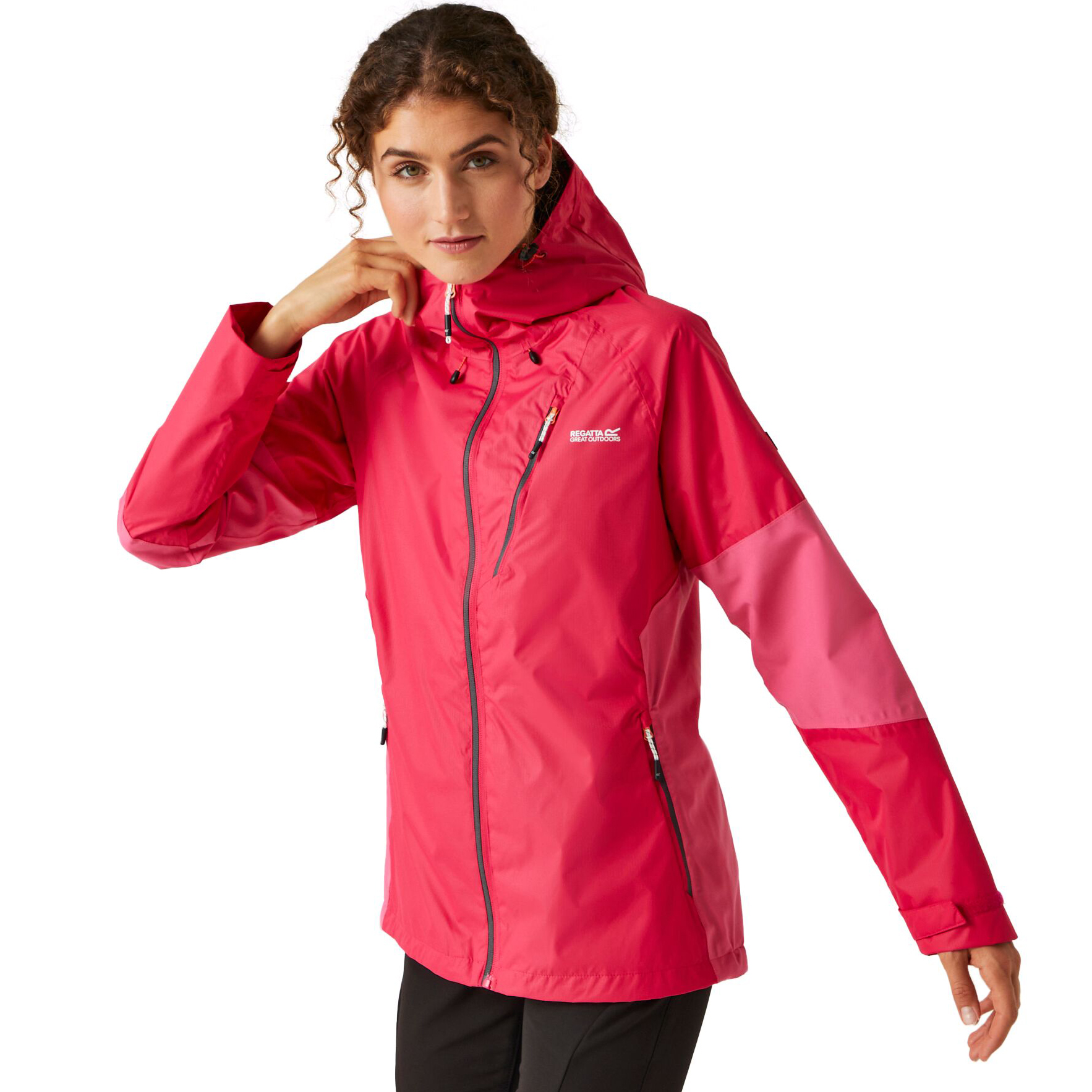 Regatta Highton Stret Jkt V je dámská bunda vyrobená z voděodpudivého prodyšného materiálu Isotex 10.000, který je navíc opatřen vodoodpudivou povrchovou úpravou DWR. Tkanina je dostatečně elastická, takže nebudete nijak omezeni v pohybu. Bunda je celorozepínací, má podlepené švy a integrovanou nastavitelnou kapucí s kšiltem. Rukávy mají strečové manžety a spodní lem je nastavitelný. Na maličkosti se budou hodit 2 hlavní kapsy na bocích, 1 náprsní kapsa nebo 1 vnitřní bezpečnostní kapsa.