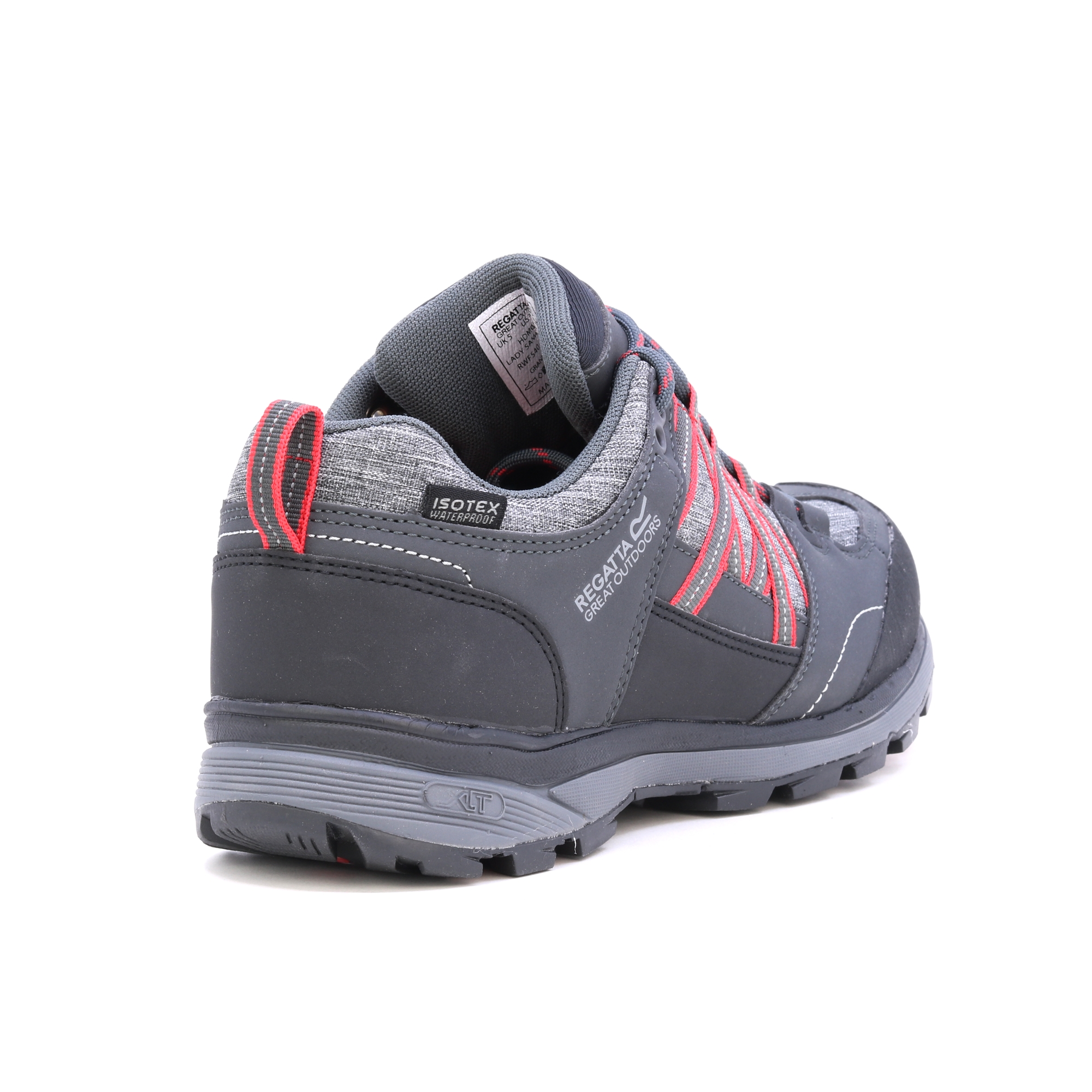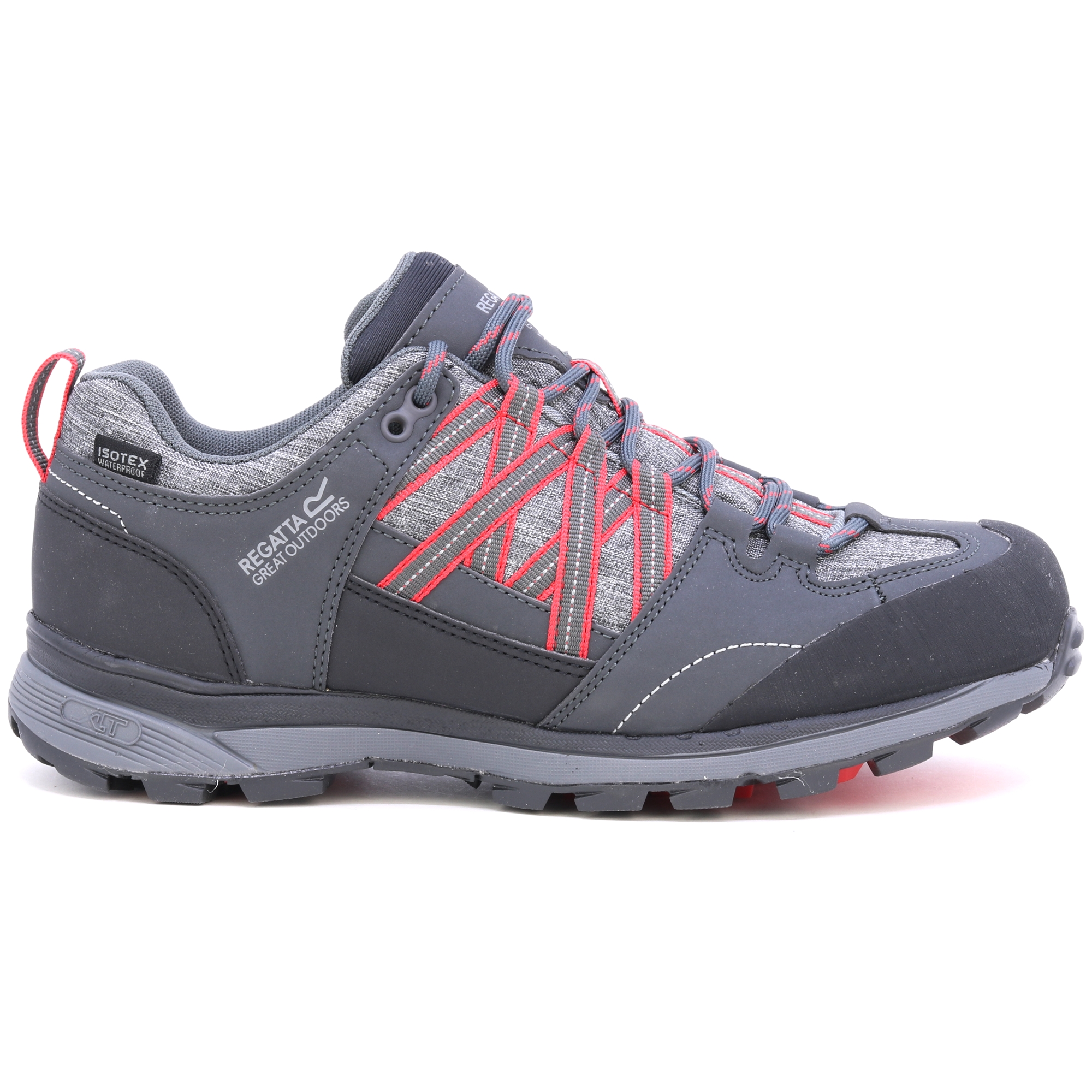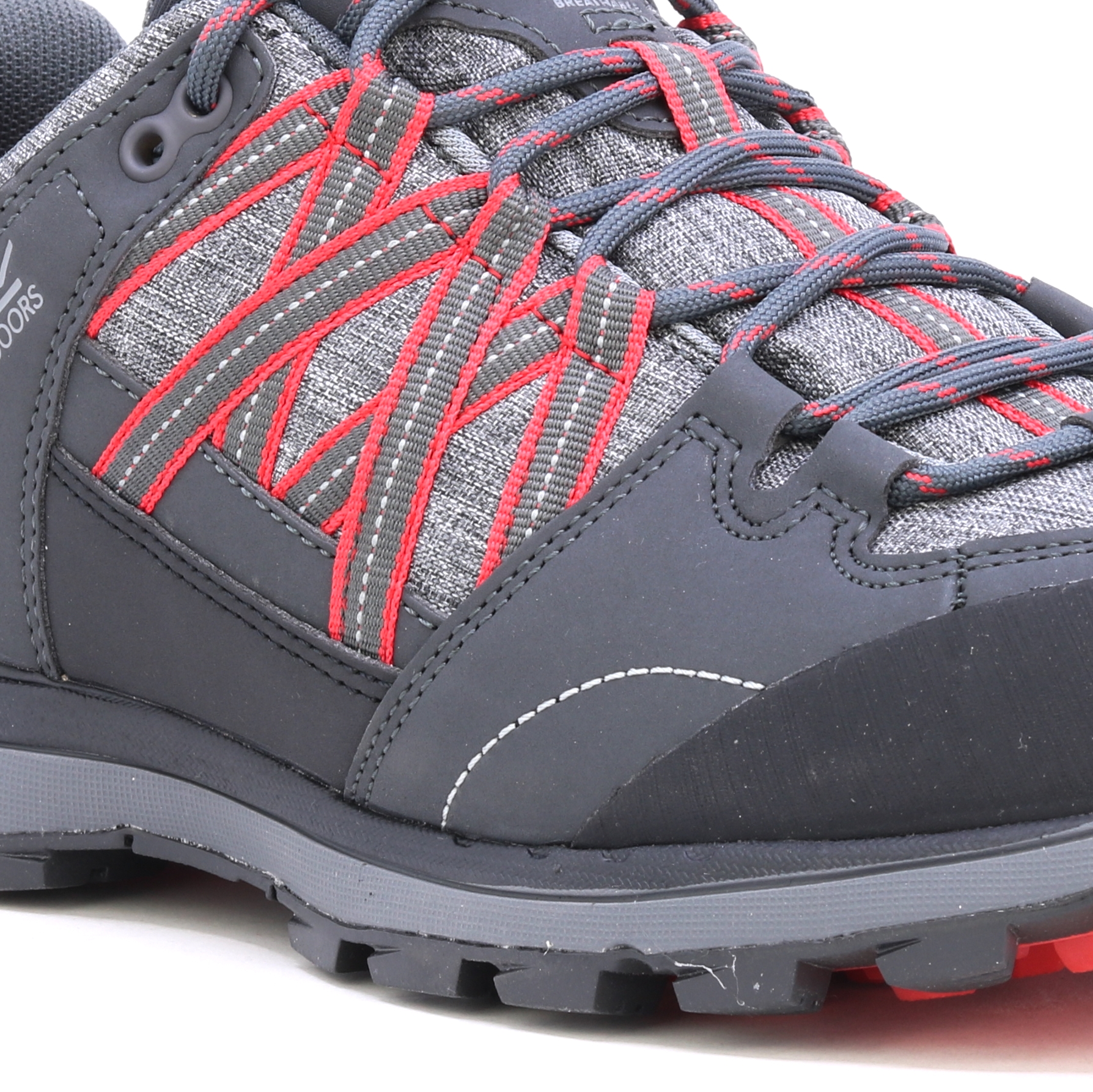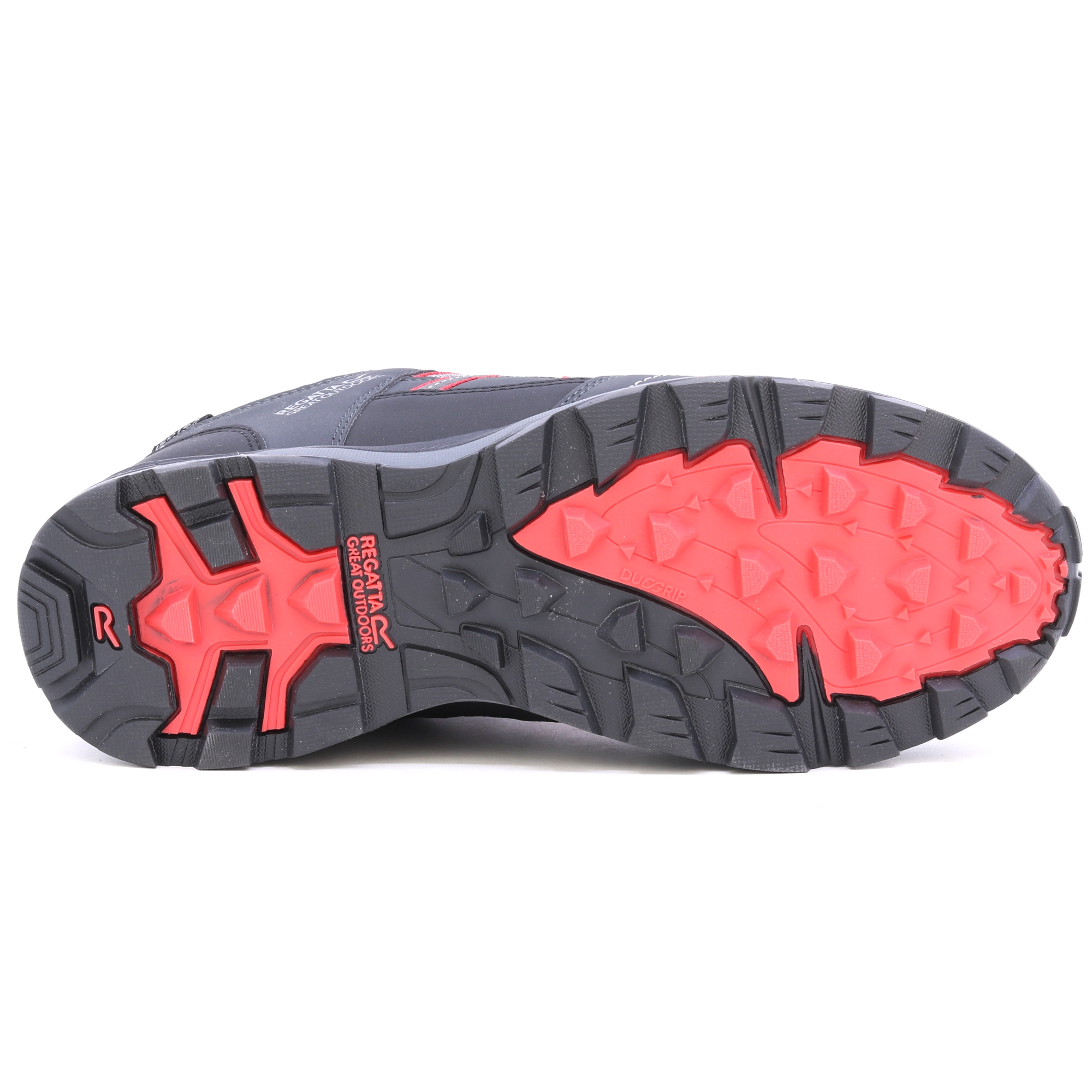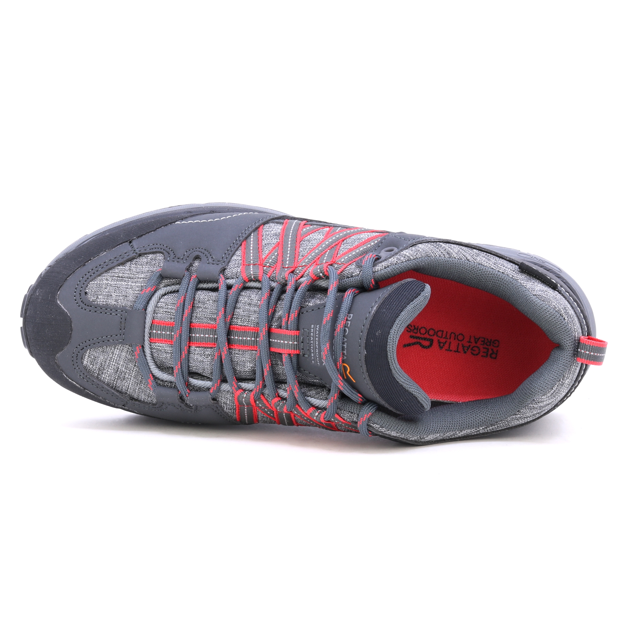 Dámské turistické boty Samaris od firmy Regatta jsou zkonstruovány z vytrvalostní mřížky s extra prostorem kolem špičky, aby umožnily přirozený pohyb při stoupání a nerovném terénu. Technologie Hydropel účinně rozptyluje vodu a bláto, zatímco nepromokavá, prodyšná Isotex membrána udržuje nohy v suchu. Podešev XLT se spolehlivým výkonem odolným proti povětrnostním vlivům, pro trvalé pohodlí v horách. Technologie podešve XLT šetří na váze a poskytuje vynikající trakci a tlumení nárazů na i mimo stezku.