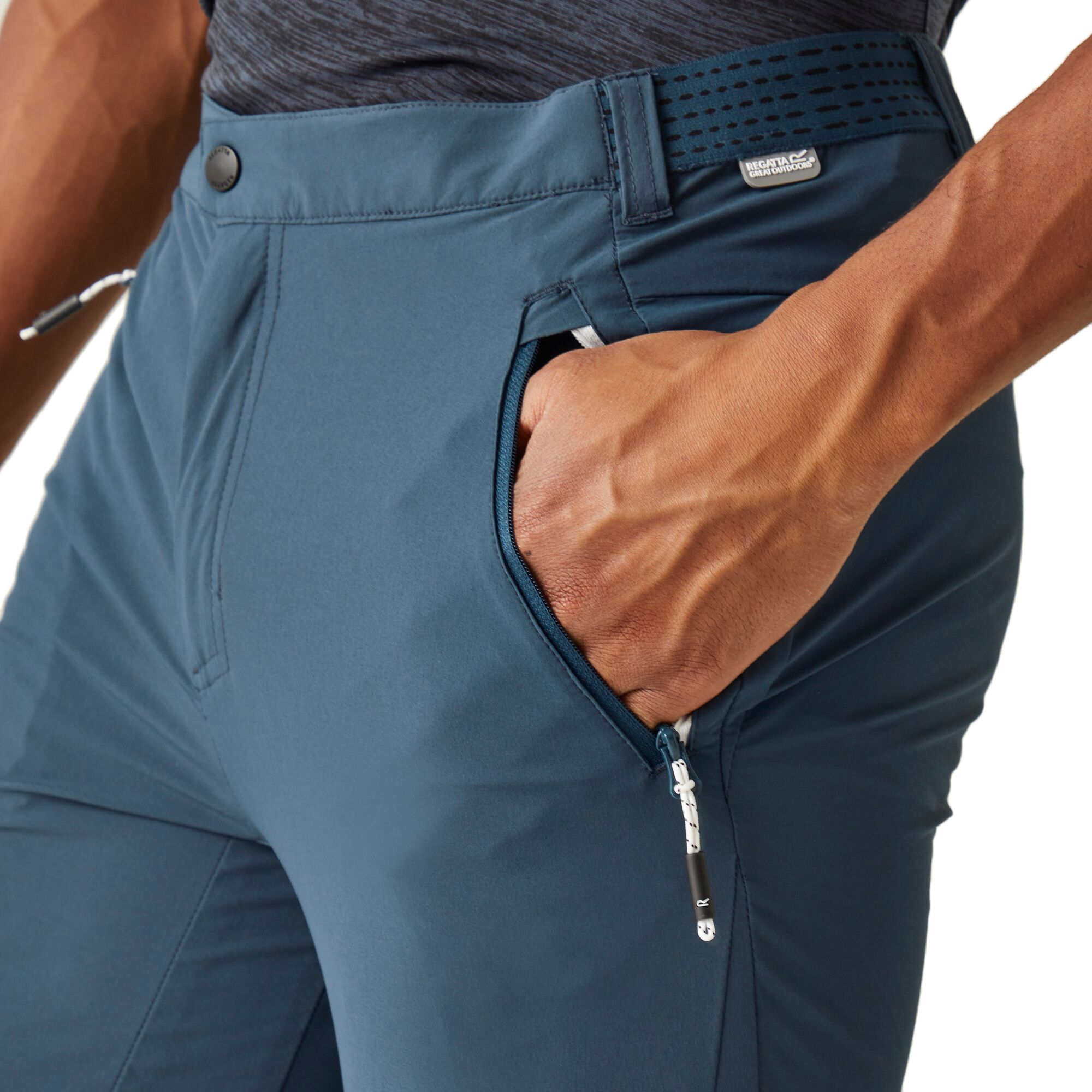 Turistické kalhoty s odnímatelnými spodními nohavicemi pro muže Regatta Mountain poskytují vynikající odolnost, mobilitu a ochranu proti povětrnostním vlivům. Tyto kalhoty jsou vyrobeny z rychleschnoucí strečové tkaniny s povrchovou úpravou DWR a oděry Cordura v místech opotřebení. Navrženy jsou s tenkým, ergonomickým tvarem a členěním v koleni pro vynikající mobilitu. Pas je vzadu vykrojen výše, aby vám poskytl krytí na dlouhé vzdálenosti, a je částečně elastický pro pohodlné nošení, které se táhne s vámi. Lemy se zipem s páskou pro uchopení pro snadné vyjmutí a přiléhavý střih přes boty. Samozřejmostí jsou i reflexní lemy. ISOFLEX - aktivní strečová tkanina - 90% polyamid / 10% elastan
