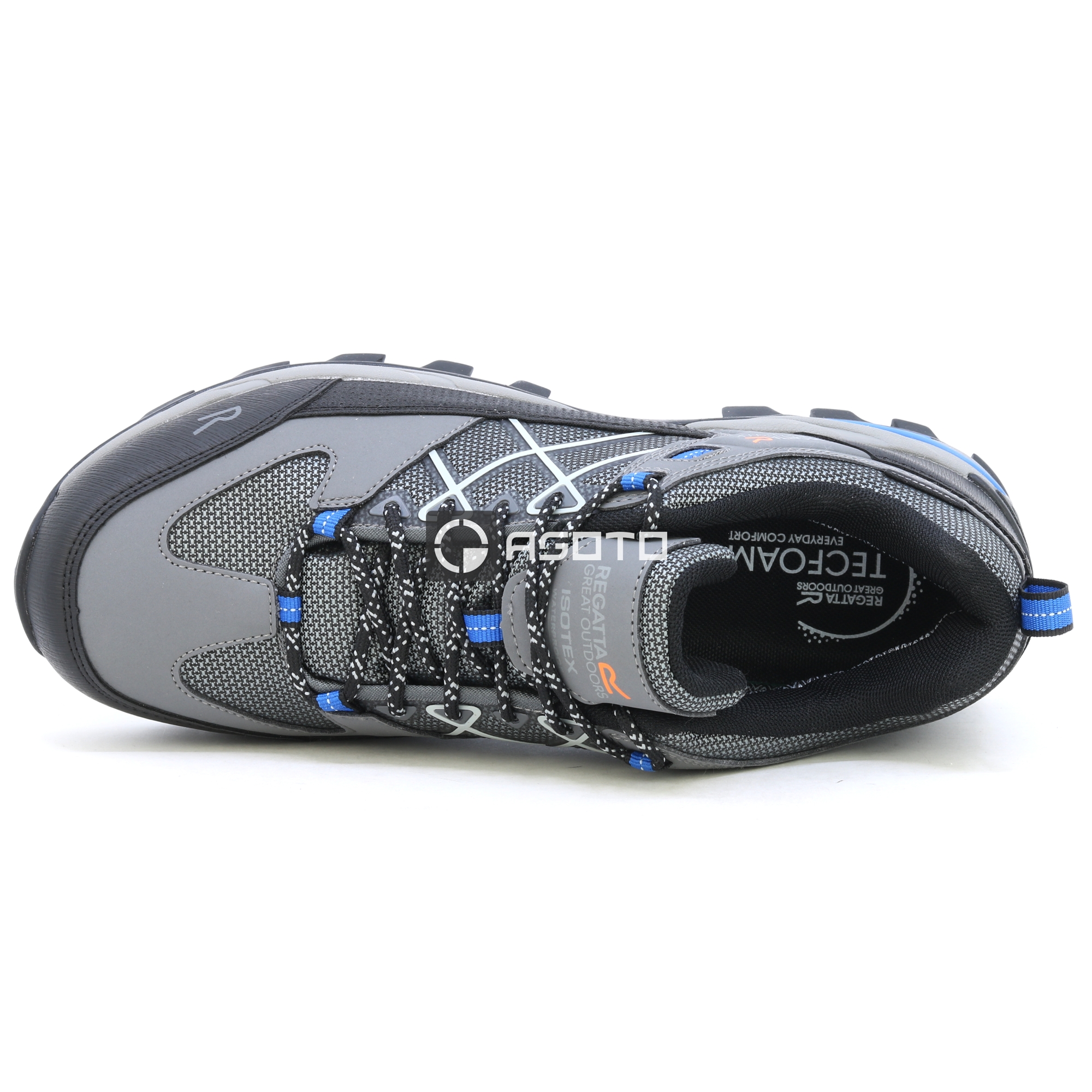 Nepromokavé, odolné a odpružené pánské turistické boty Samaris III Low od značky Regatta v šedé barvě vás spolehlivě připraví na jakékoli dobrodružství v přírodě. Díky technologii Isotex jsou tyto boty plně voděodolné a zaručují, že dovnitř nepronikne déšť ani stříkající voda, přičemž zároveň zachovávají vynikající prodyšnost. Odolný technický svršek ze syntetiky odpuzuje vodu a společně s robustní síťovinou proti oděru umožňuje snadné čištění i po náročném terénu. Pohodlí při chůzi zvyšuje vnitřní ponožka TECFOAM, která se přizpůsobí tvaru nohy a poskytuje výjimečnou měkkost při každém kroku. Polstrovaný pěnový límec a jazyk zajišťují komfort i během dlouhých túr. Ochranná technická špička a zpevněné části brání poškození obuvi a chrání nohu před nárazy a oděrkami od kamenů. Mezipodešev EVA s tlumicí vložkou v patě pohlcuje otřesy a zvyšuje stabilitu, zatímco odolná gumová podešev nabízí jistý krok, skvělou přilnavost a trakci i na kluzkém povrchu. Tyto šedé turistické boty kombinují moderní technologie, komfort a spolehlivou ochranu a jsou ideální volbou pro každého dobrodruha.
