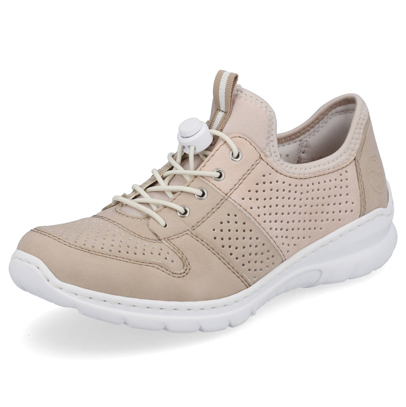Stylová a pohodlná dámská obuv značky RIEKER, která se hodí pro každou ženu hledající spojení elegance a komfortu. Neutrální barevné provedení dodává modelu univerzálnost, zatímco jemná perforace po obvodu tenisek zajišťuje optimální odvětrávání a svěží pocit při nošení. Měkká stélka z paměťové pěny MemoSoft se přizpůsobí tvaru chodidla a poskytuje dokonalý komfort na každém kroku. Díky technologii Antistress je podešev lehká, flexibilní a efektivně tlumí nárazy, což usnadňuje celodenní chůzi. Tyto tenisky jsou skvělým doplňkem ke každému outfitu a dodají vám sebevědomí při každé příležitosti.