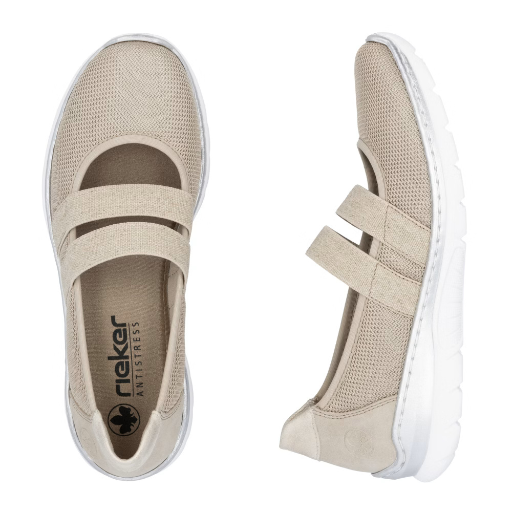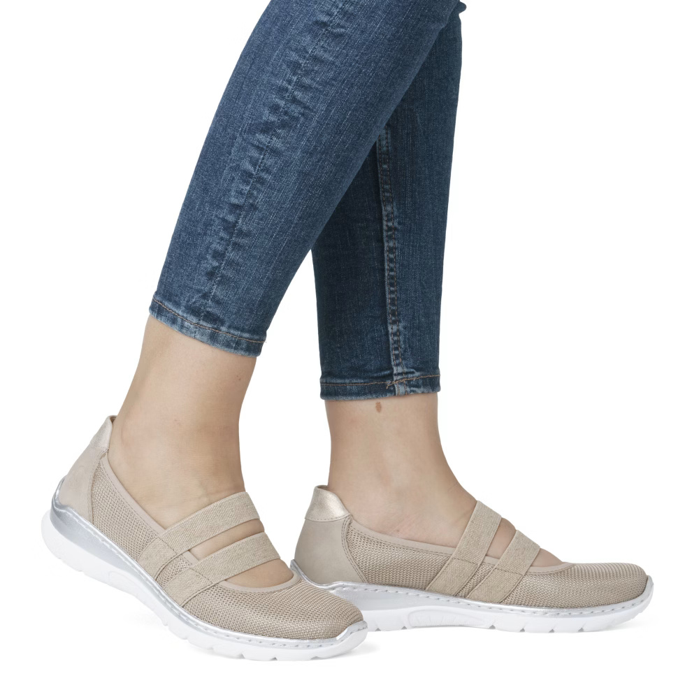 Elegantní a pohodlná – taková je obuv RIEKER, která se pyšní promyšlenou kombinací materiálů v jemných světlých tónech. Pružné pásky přes nárt zajišťují stabilitu a perfektně se přizpůsobí tvaru nohy, zatímco nadpozemsky měkká stélka z paměťové pěny MemoSoft tlumí každý došlap a poskytuje maximální komfort po celý den. Flexibilní podešev s technologií Antistress zaručuje volnost pohybu a účinně absorbuje nárazy, což oceníte nejen při celodenním nošení v práci, ale i během volnočasových aktivit. Stylový design v kombinaci s propracovanými pohodlnými prvky dělá z této obuvi perfektní volbu pro ženy, které chtějí spojit eleganci s bezstarostným komfortem.
