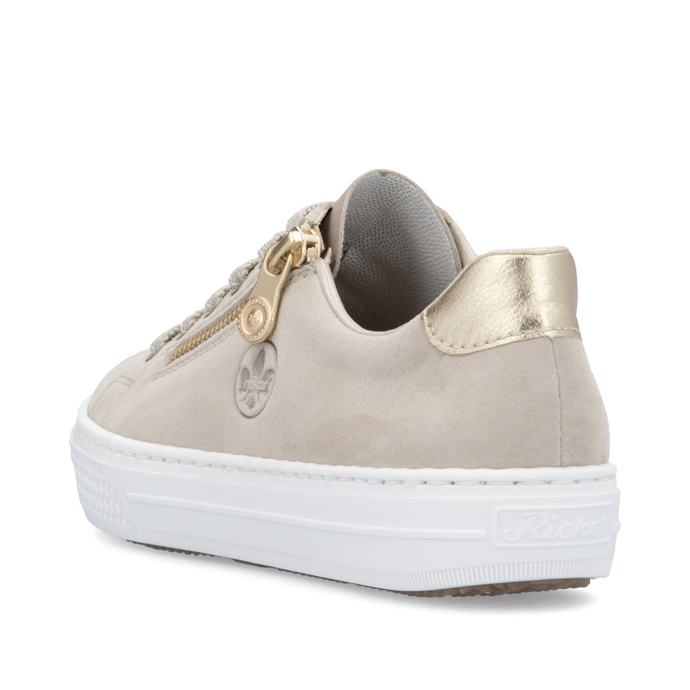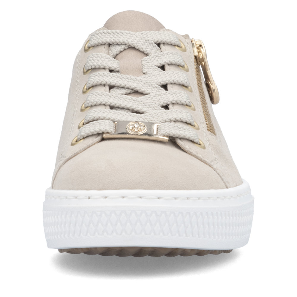 Dámská obuv značky RIEKER je nezbytným doplňkem každého šatníku, spojujícím eleganci, komfort a praktičnost. Tyto kožené tenisky v neutrální béžové barvě okouzlí svými jemnými odlesky na dekorativních prvcích, které jim dodávají sofistikovaný vzhled. Měkká stélka z paměťové pěny MemoSoft se dokonale přizpůsobí tvaru chodidla a zajistí maximální pohodlí po celý den. Praktický boční zip umožňuje snadné nazouvání, zatímco šněrování zajistí dokonalé přizpůsobení obuvi noze. Flexibilní podešev efektivně tlumí nárazy a poskytuje komfort i při celodenním nošení, což z těchto tenisek činí ideální volbu pro každodenní pochůzky, nákupy nebo volný čas. Technologie Antistress zajišťuje lehkost, pružnost a optimální oporu, díky čemuž bude každý váš krok příjemnější.