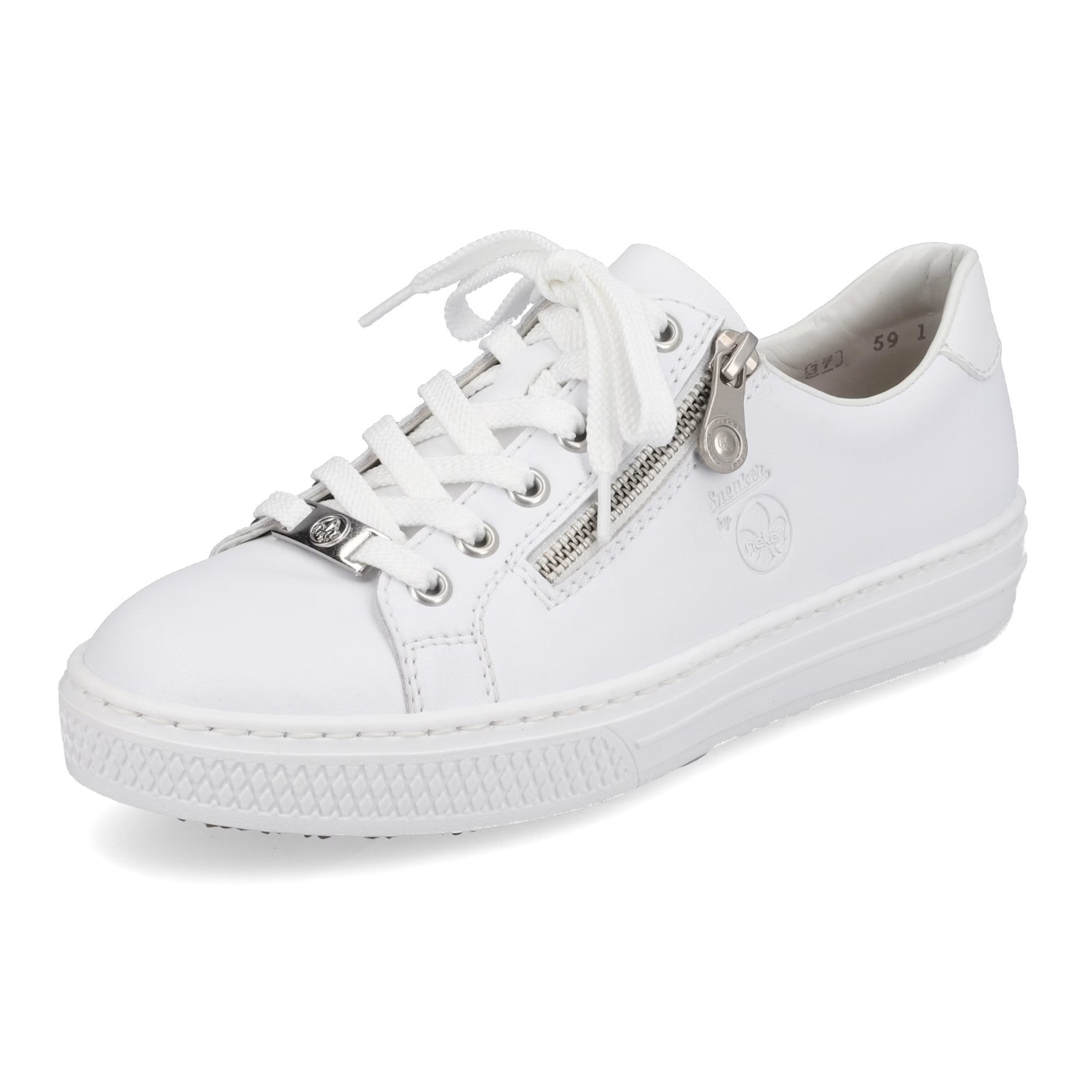 Dámské tenisky RIEKER L59L1-83 v elegantní bílé barvě jsou ideální volbou pro ženy, které hledají stylový a pohodlný doplněk pro každodenní nošení. Tyto tenisky jsou vyrobeny z kvalitních materiálů, které zajišťují lehkost, prodyšnost a celodenní komfort. Měkká vnitřní stélka a flexibilní podešev zaručují pohodlnou chůzi a optimální oporu nohou. Moderní design s čistými liniemi a jemnými detaily dodává obuvi univerzální vzhled, který se skvěle hodí jak k volnočasovým outfitům, tak k městskému stylu. Praktické šněrování umožňuje snadné přizpůsobení tvaru nohy, zatímco decentní logo značky podtrhuje její kvalitu a styl. Tenisky RIEKER L59L1-83 jsou perfektní volbou pro pohodlí i eleganci při každodenním nošení.