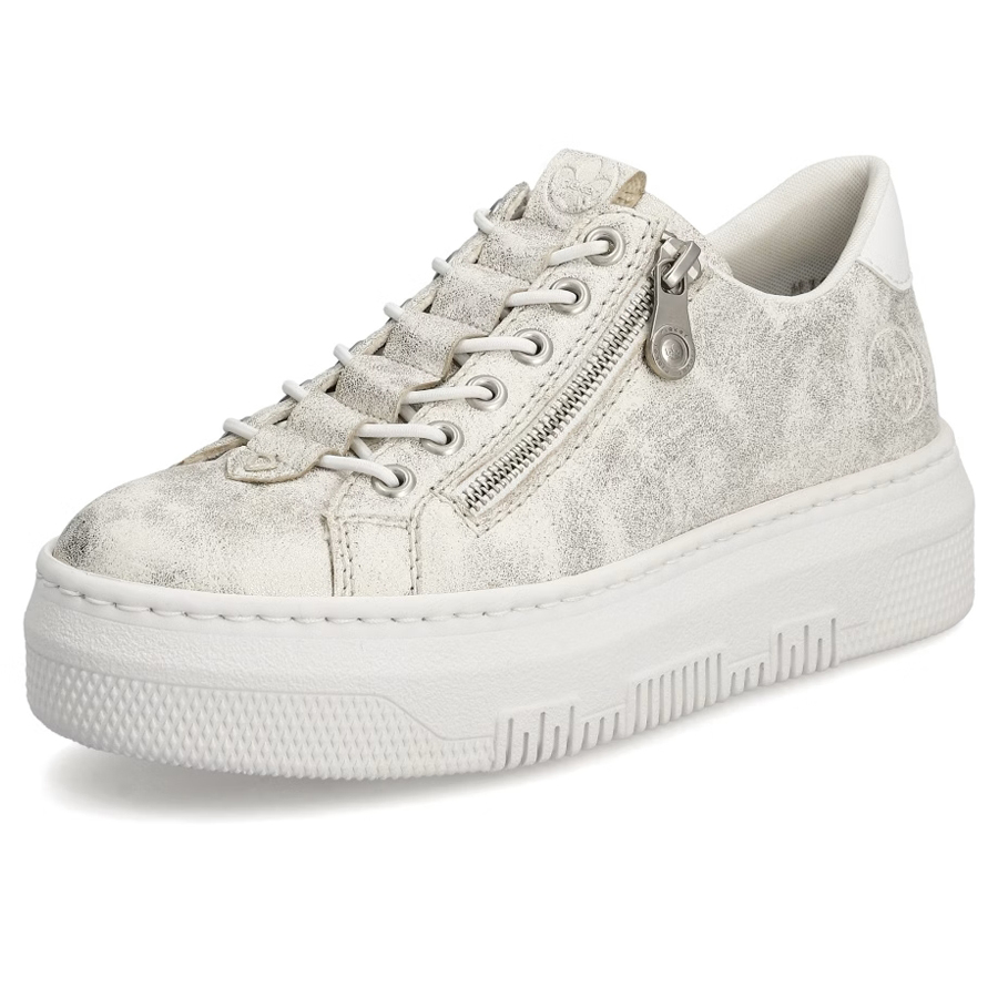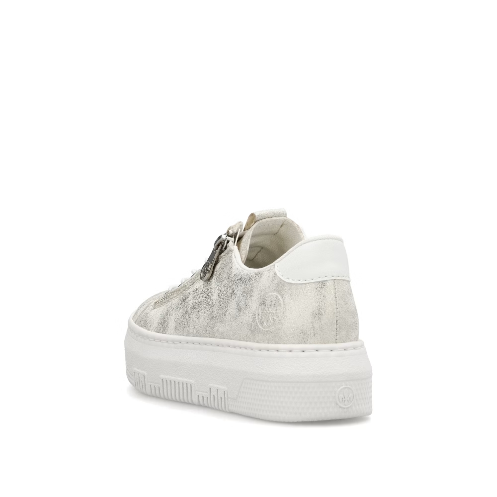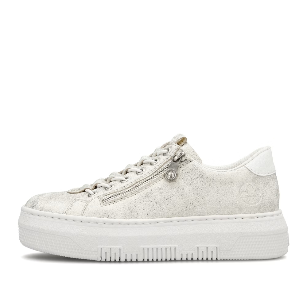 Tyto dámské tenisky od značky Rieker zaujmou na první pohled svými nádhernými odlesky a bílým detailem na patě, doplněné logem značky. Jsou ideální volbou pro ženy, které milují módu a zároveň vyžadují pohodlí. Elastické šněrování a zip na nártu nejen zdobí, ale také usnadňují obouvání a umožňují přizpůsobení boty podle vašich potřeb. Vyšší flexibilní podešev a měkká stélka zajišťují maximální pohodlí a podporu při každém kroku. Tyto tenisky kombinují výrazný design s praktickými prvky, což z nich činí perfektní volbu pro každodenní nošení. Technologie: Antistress: Lehká a flexibilní podrážka, která absorbuje nárazy a přizpůsobuje se tvaru nohy pro maximální pohodlí. Lite’n Soft: Kombinace lehké podešve a měkké stélky, která poskytuje pocit chůze po oblacích.