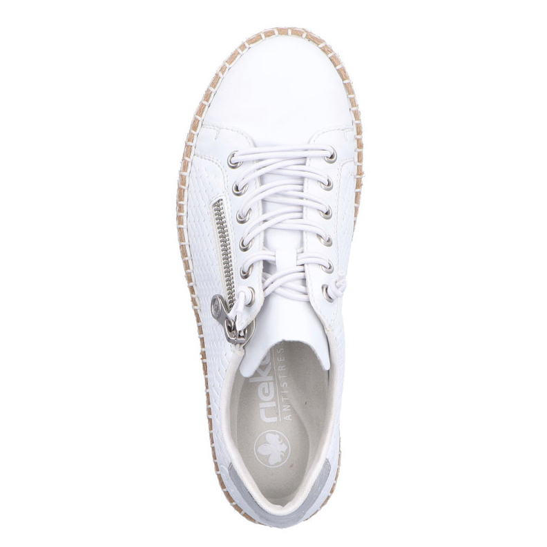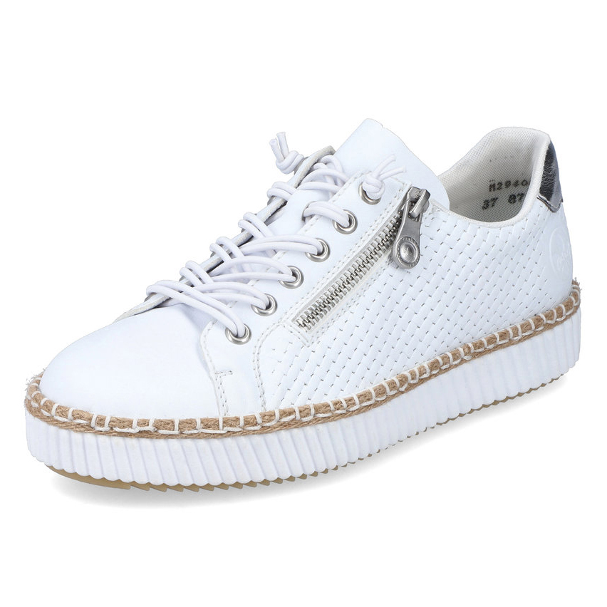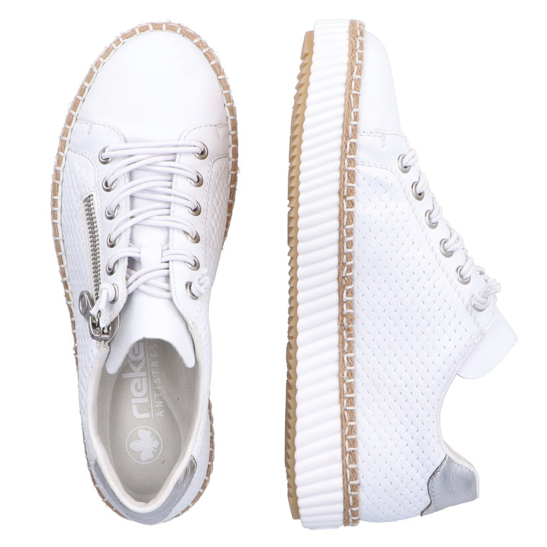 Stylové a pohodlné bílé dámské tenisky RIEKER M2940-80 jsou perfektní volbou pro každodenní nošení. Lehká konstrukce, pružná podrážka a měkká stélka zajišťují maximální komfort i při celodenním pohybu. Elegantní minimalistický design umožňuje snadné kombinování s různými outfity, od ležérních po sportovní. Tenisky jsou vyrobeny z odolných a snadno udržovatelných materiálů, zatímco protiskluzová podrážka poskytuje bezpečnost na různých površích. Ideální společník na procházky, nákupy nebo cestování – s modelem RIEKER M2940-80 budete vypadat stylově a cítit se pohodlně po celý den.