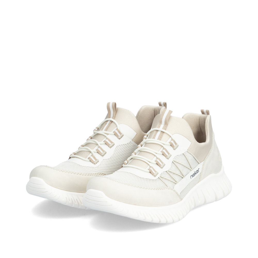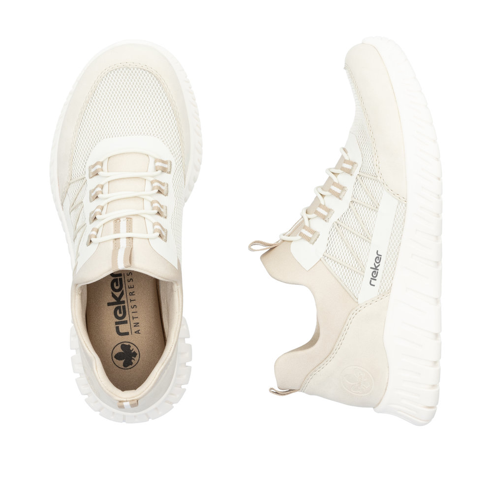 Tyto tenisky značky RIEKER kombinují moderní design se svěžím pastelovým vzhledem a maximálním pohodlím. Svršek tvořený kombinací různých materiálů v jemných barvách dodává obuvi originalitu a styl, který upoutá na první pohled. Praktické šněrování pomocí gumičky a pružný lem horního okraje umožňují snadné obouvání a perfektní přizpůsobení tvaru chodidla. Vyjímatelná stélka s paměťovou pěnou MemoSoft poskytuje mimořádnou měkkost a skvěle se přizpůsobí každému kroku. Flexibilní podešev s technologií Antistress zaručuje lehkost, pružnost a vynikající tlumení nárazů, takže se budete cítit pohodlně po celý den. Tyto tenisky jsou ideální volbou pro každého, kdo hledá spojení moderního stylu a nekompromisního komfortu.