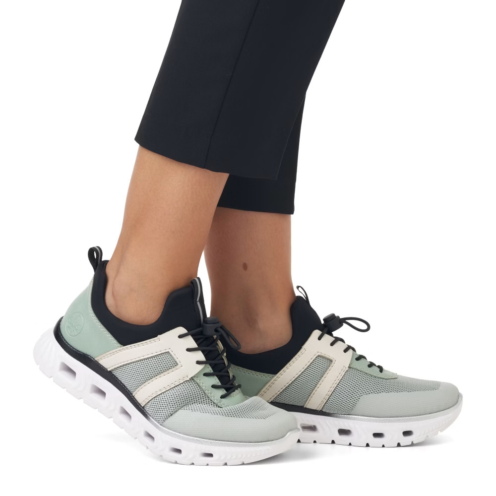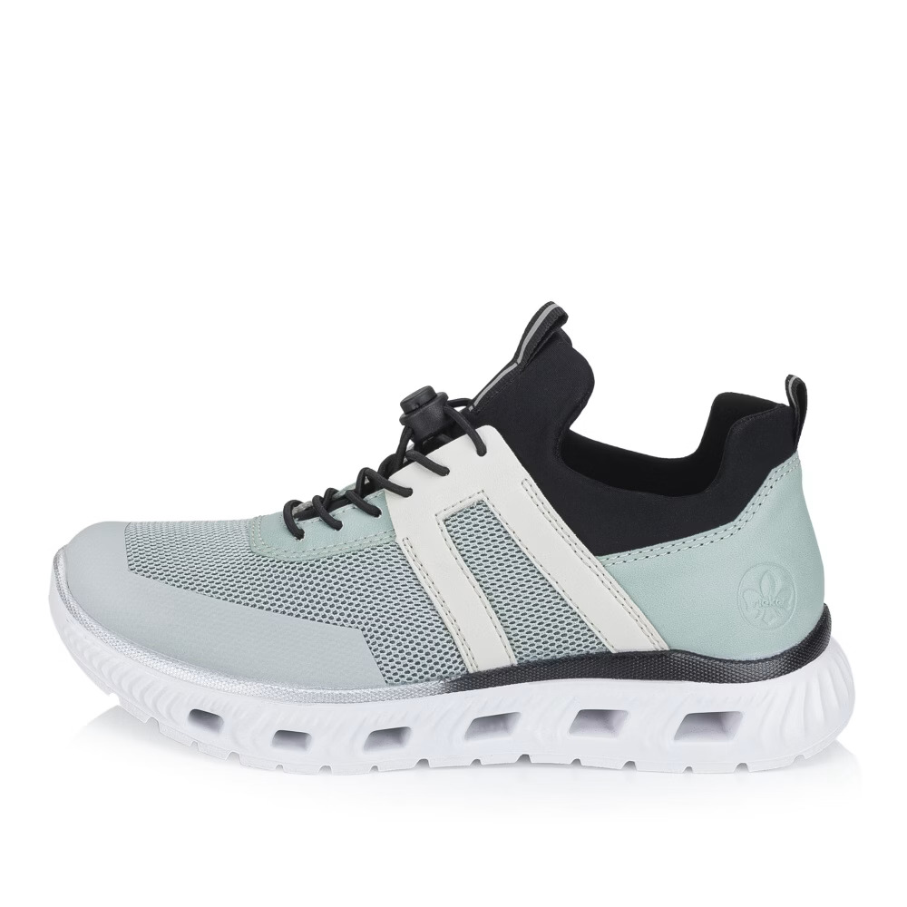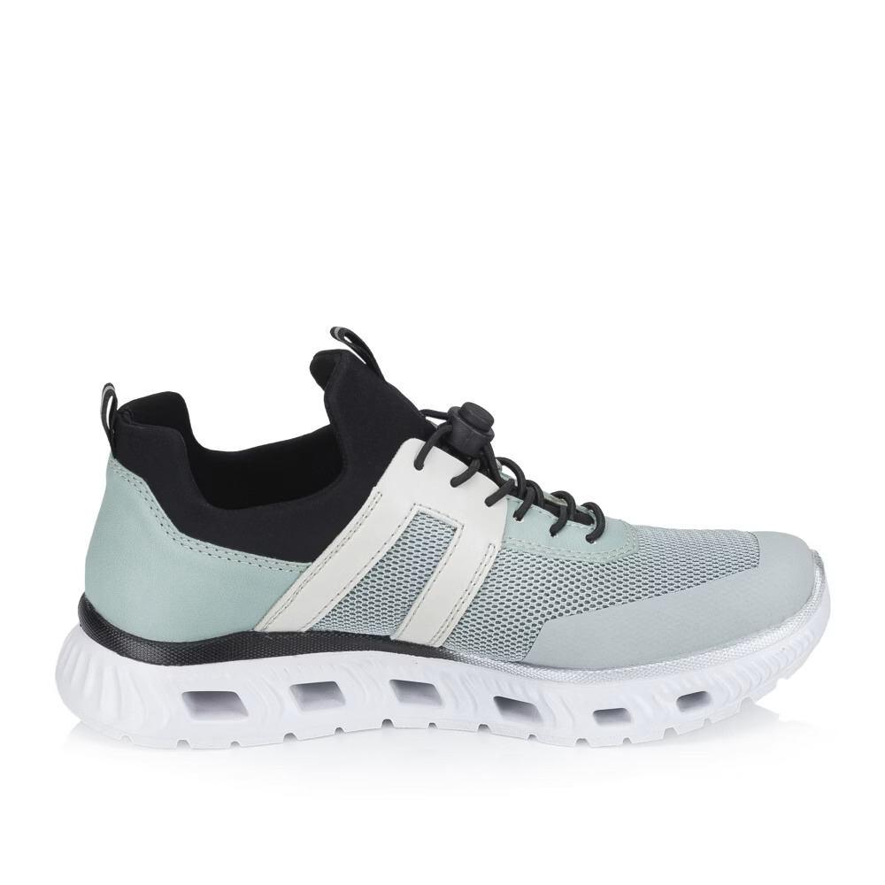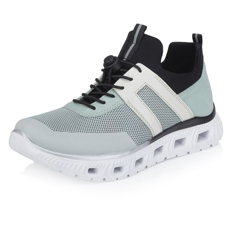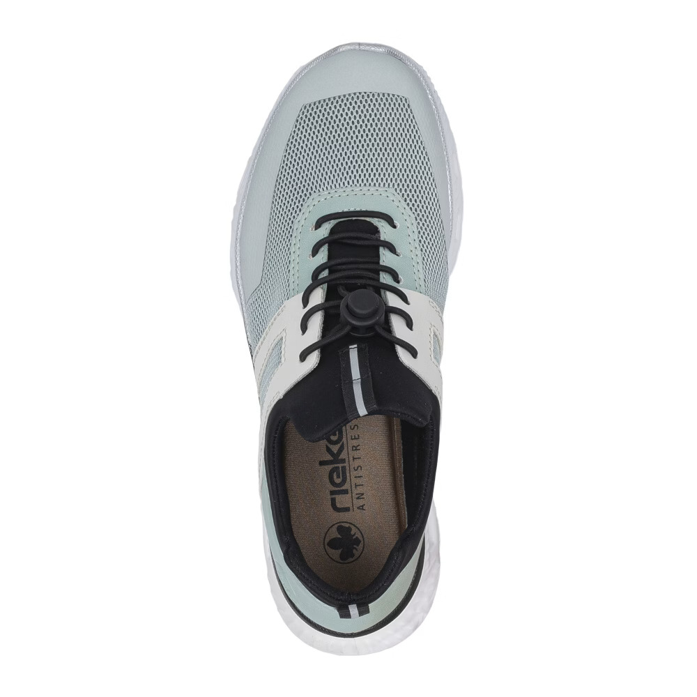 Tyto nápadité boty značky Rieker budou pohodlnými společníky na všech vašich cestách. Moderní vzhled vytváří kombinovaný svršek barevně i materiálově a podtrhne jej designová podešev svým vzhledem. Gumička na nártu usnadňuje obutí a vyzutí, lehká a nárazy tlumící podrážka nabízí trvalý pocit pohody i během dlouhých dnů. Zaručeně oceníte stélku, která se přizpůsobí chodidlu díky paměťové pěně. Stačí vklouznout a jít! Technologie: Antistress – podešev je díky této technologii lehká, flexibilní, absorbuje nárazy při došlapu a snadno se přizpůsobí každé noze.