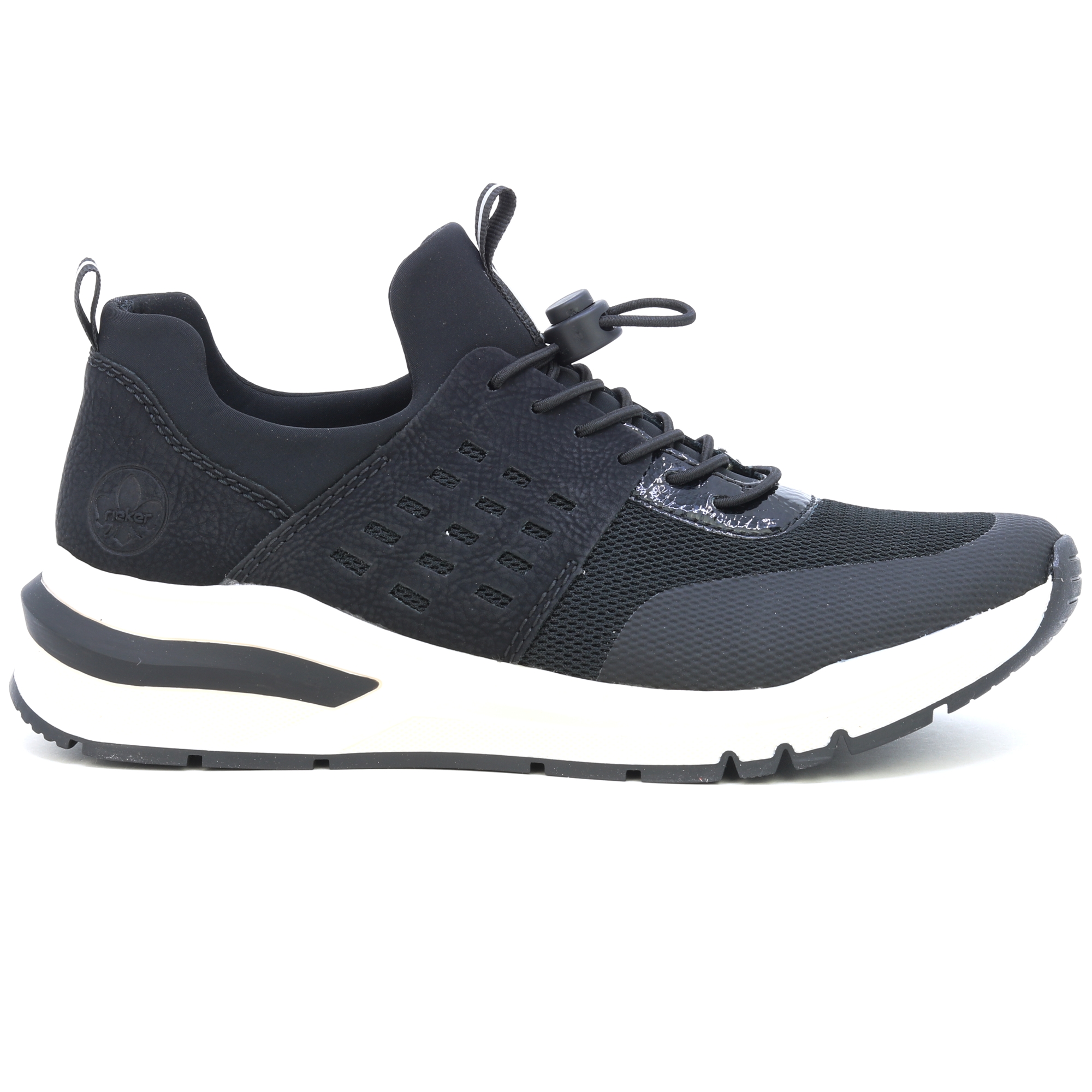 Černé dámské tenisky RIEKER M6651-00 představují dokonalou kombinaci elegance a komfortu, kterou oceníte při každodenním nošení. Lehká konstrukce a pružná podrážka zajišťují pohodlí i při delším pohybu, zatímco moderní design s decentními detaily snadno doplní váš městský nebo ležérní outfit. Kvalitní materiály zajišťují odolnost a snadnou údržbu, měkká stélka poskytuje maximální pohodlí a protiskluzová podrážka zaručuje bezpečnost na různých površích. Tyto tenisky jsou skvělou volbou pro všechny příležitosti, kdy chcete spojit stylový vzhled s praktickým pohodlím.