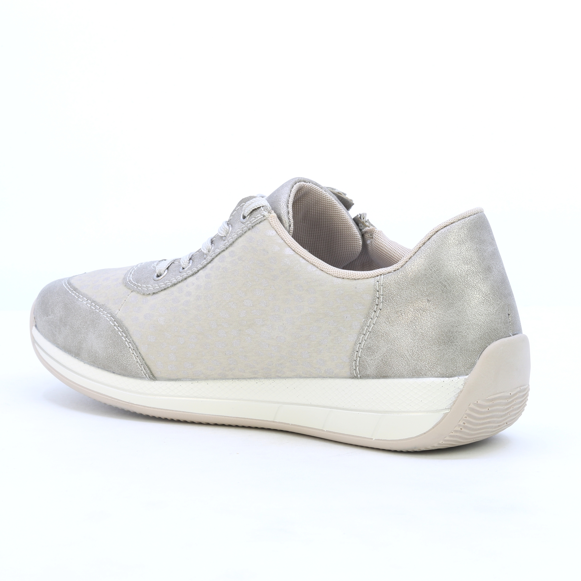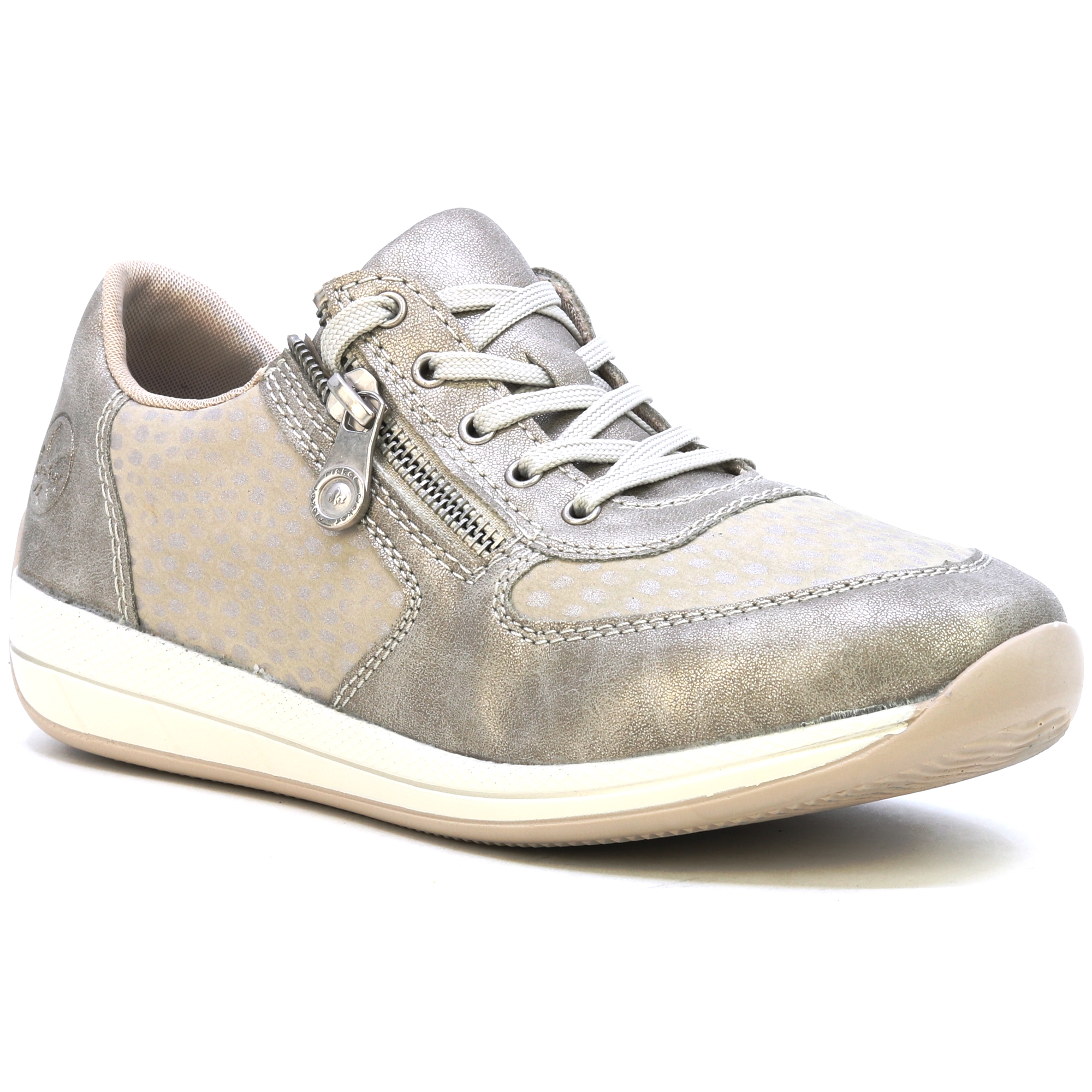 Dámské tenisky RIEKER N1112-60 v béžové barvě jsou skvělou kombinací stylu a pohodlí. Jejich moderní design je doplněn jemnými detaily, které dodávají botám svěží a elegantní vzhled. Praktické šněrování a zip zajišťují snadné nazouvání i přizpůsobení tvaru nohy. Lehce zvýšená podrážka poskytuje nejen stabilitu, ale i maximální komfort při celodenním nošení. Tyto tenisky jsou ideální volbou pro každodenní aktivity, procházky po městě či volnočasové chvíle.