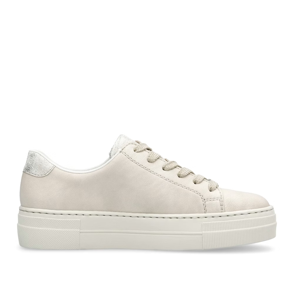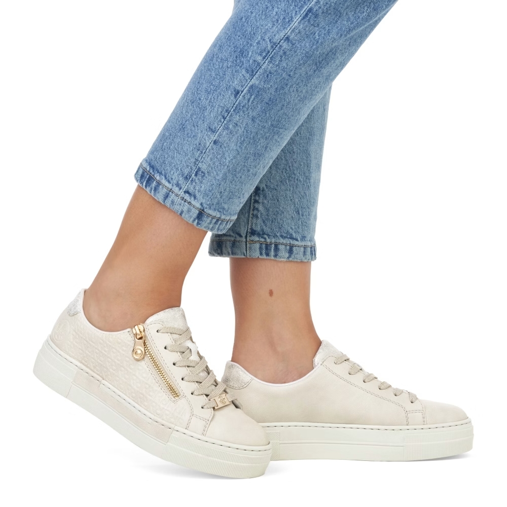 RIEKER N4914-80 béžové dámské tenisky jsou stylovým spojením elegance a pohodlí, ideálním pro každodenní nošení. Tento model zaujme světlým béžovým svrškem vyrobeným z kvalitní syntetické kůže, která se snadno udržuje a dodává obuvi moderní vzhled. Jemný perforovaný vzor na bocích teniskám přidává nejen na stylu, ale také zajišťuje lepší prodyšnost, což oceníte při delším nošení. Měkká stélka RIEKER Antistress perfektně tlumí nárazy a zvyšuje komfort při chůzi, zatímco lehká a flexibilní podrážka poskytuje stabilitu na různých typech povrchů. Praktické šněrování umožňuje tenisky přizpůsobit podle potřeby, a béžový odstín se snadno kombinuje s různými outfity, takže jsou tyto tenisky všestrannou volbou pro každou ženu, která chce vypadat stylově a zároveň se cítit pohodlně.