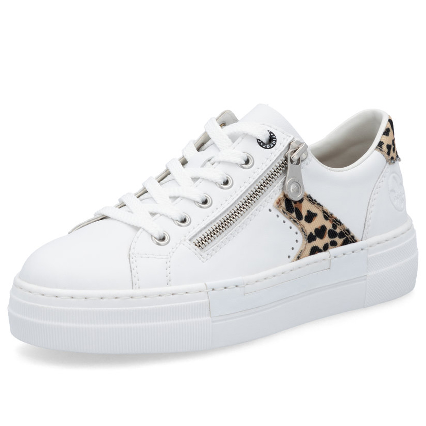 Moderní tenisky RIEKER Vás okouzlí na první pohled díky originálnímu designu, který kombinuje bílý svršek s atraktivními aplikacemi se zvířecím vzorem. Funkční zip na boční straně umožňuje rychlé a pohodlné obutí, zatímco šněrování zajistí dokonalé přizpůsobení tvaru Vaší nohy. Měkká stélka z paměťové pěny MemoSoft poskytuje mimořádné pohodlí, tlumí nárazy a dokonale se přizpůsobí chodidlu, čímž zaručuje komfort při celodenním nošení. Lehká a flexibilní konstrukce boty spolu s technologiemi Rieker Antistress zajistí příjemný pocit při chůzi a optimální oporu. Pořiďte si tyto jedinečné tenisky RIEKER a dopřejte si kvalitní, stylovou a pohodlnou obuv, která se stane nepostradatelnou součástí Vašeho šatníku.