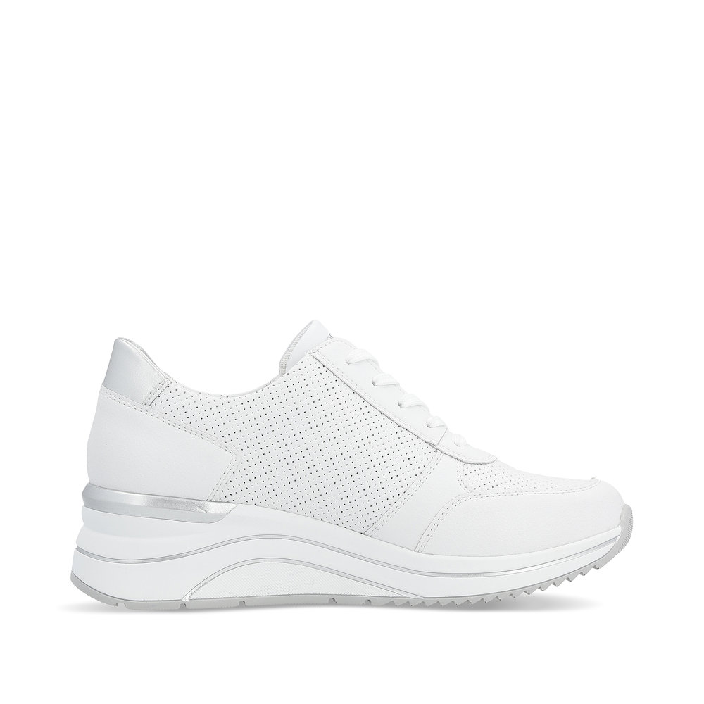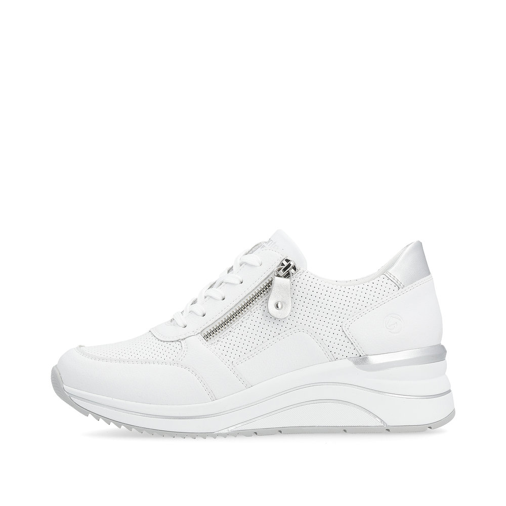 Obuv REMONTE představuje vyšší řadu značky RIEKER a je synonymem pro kvalitu použitých materiálů. Tyto unikátní tenisky RIEKER svým nadčasovým designem a precizně zpracovanou podešví pozvednou ženskost každé z vás. Pro snadné obouvání je obuv vybavena zipem na nártu a šněrováním, které vám umožní přizpůsobit boty přesně podle vašich požadavků. Měkká vyjímatelná stélka a vyšší podešev zajistí, že se budete cítit pohodlně po celý den, a to i při dlouhém nošení. Tento model je ideální jak na cestu do práce, tak na procházky městem, a oceníte také jeho širší střih, který poskytuje chodidlu dostatek prostoru.